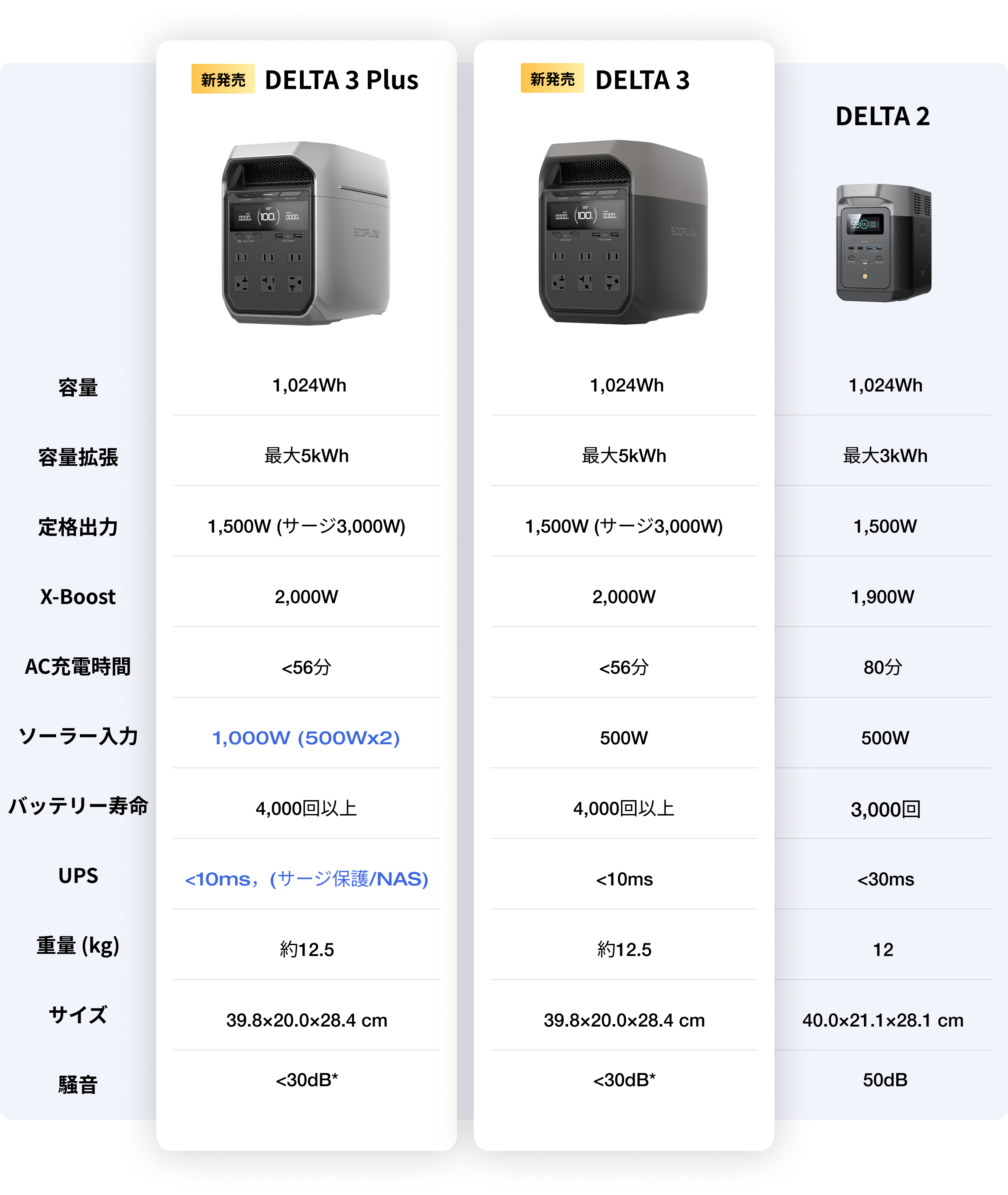 DELTA 3シリーズは1,500Wの出力で、冷蔵庫、テレビ、コンピュータ、オーブンなど99%の電化製品に電力を供給できます。X-Boostテクノロジーにより、最大2,000Wの電化製品(例:ヘアドライヤー1,800W)にも電力を供給できます。