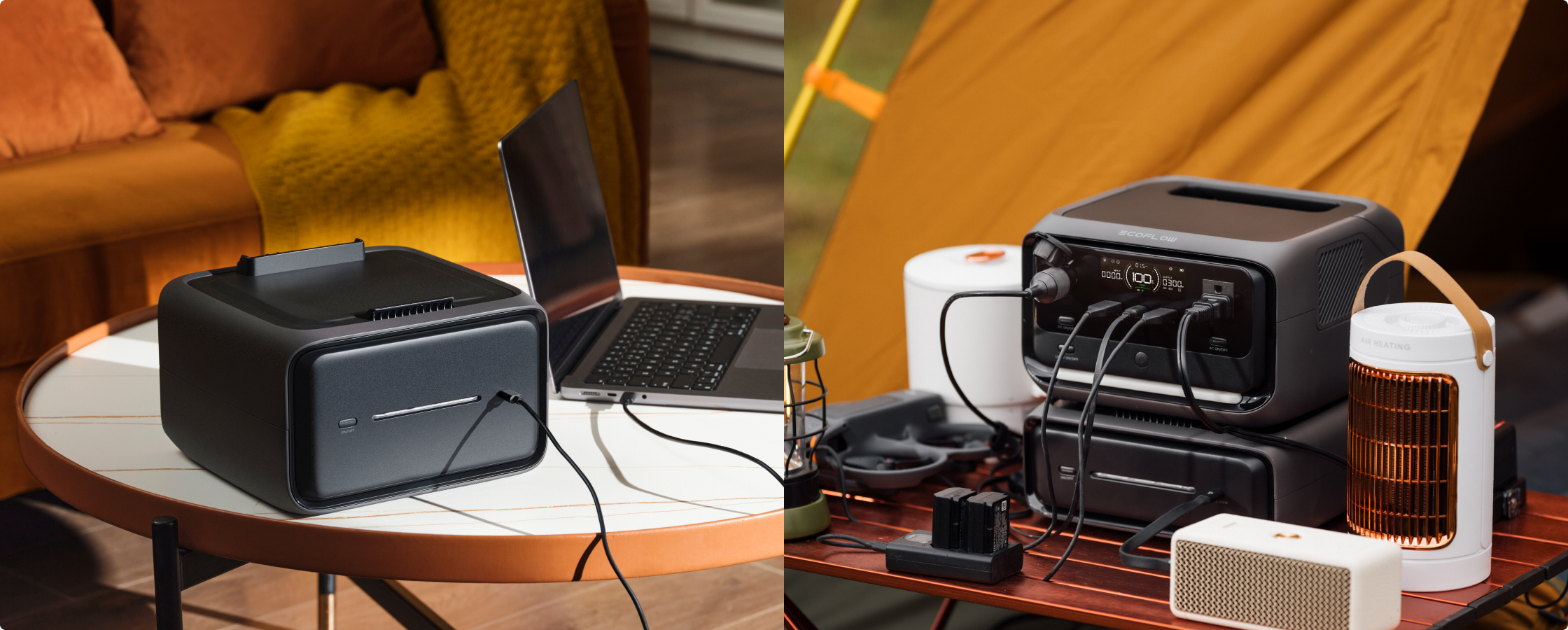 アウトドア時には本体やエクストラバッテリーを手軽に持ち出せ、防災時には容量を拡張して長時間のバックアップを得ることができるため、安心感を得られます。EB290(286Wh)またはEB580(572Wh)から選択し、最大858Whの電力まで簡単に拡張できます。