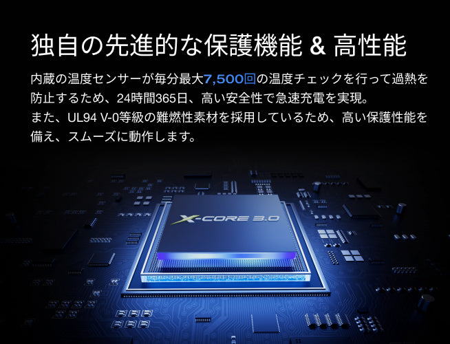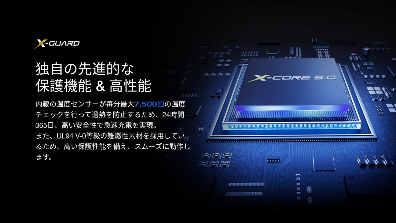 高出力の充電中は、本体がわずかに発熱します。本製品には複数の保護機能が組み込まれているため、安心して使用することができますが、直接触れないことを推奨します。