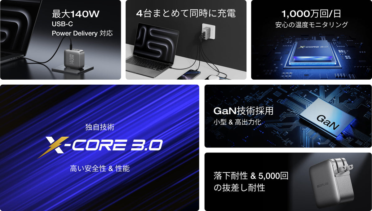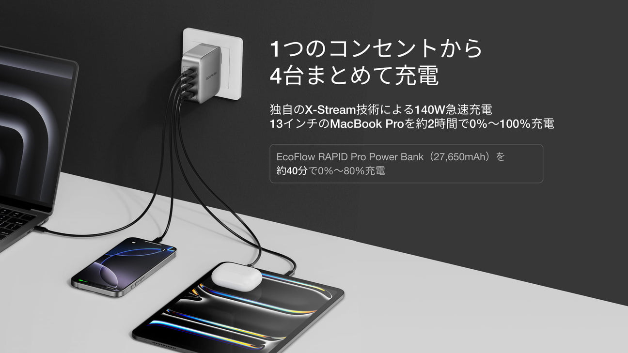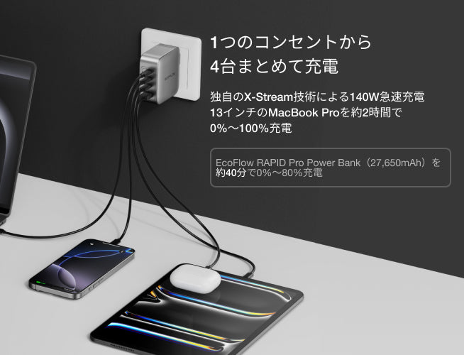 EcoFlow RAPID Pro 140W GaN急速充電器(4ポート):