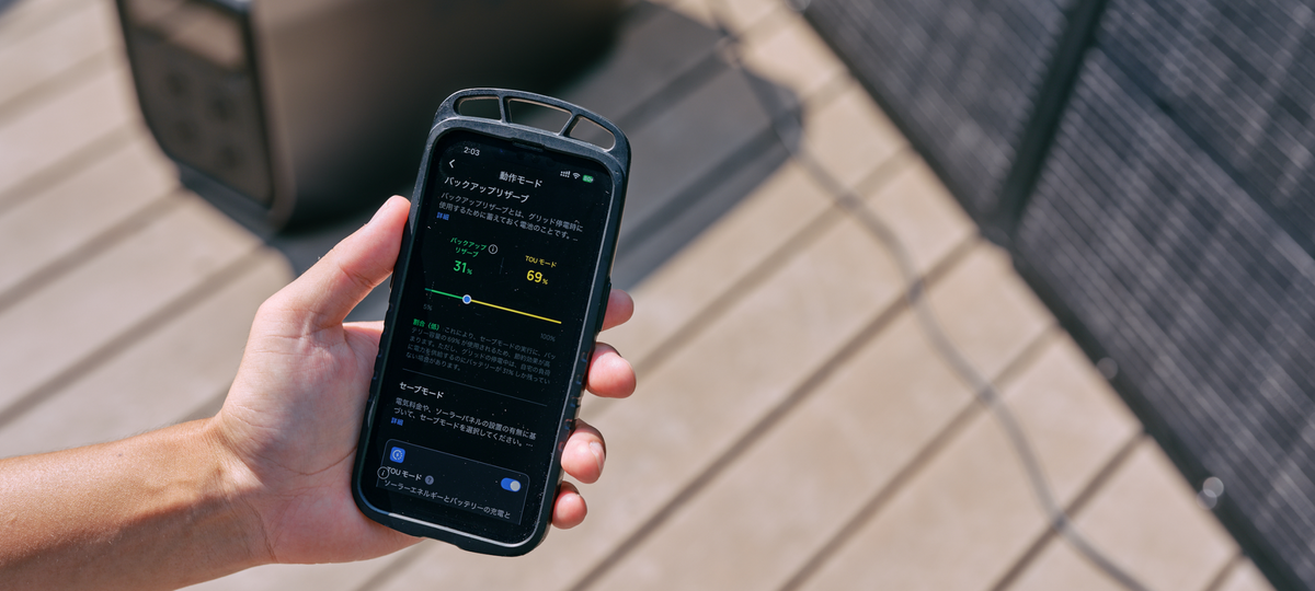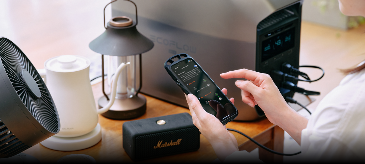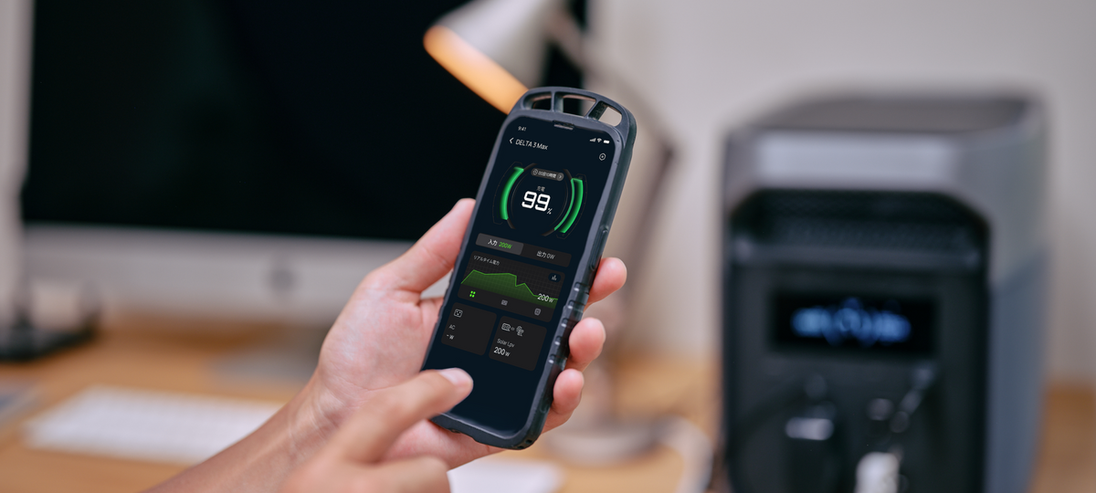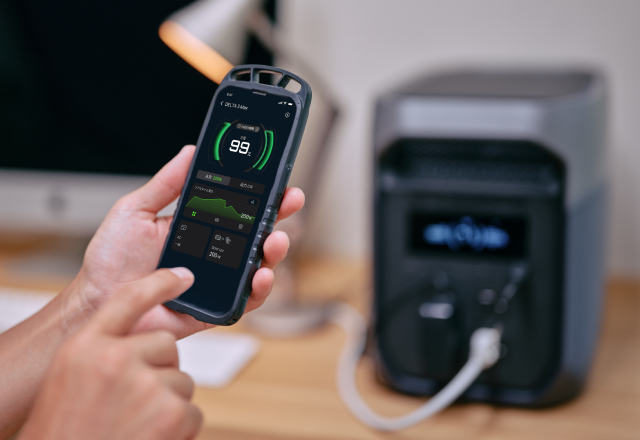 電源や出力のオン/オフ制御はもちろん、バッテリー状態やポートの使用状況、充放電状況をスマホ1つでリアルタイムモニタリング。