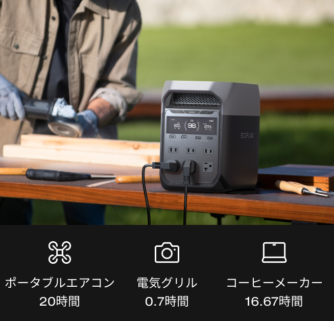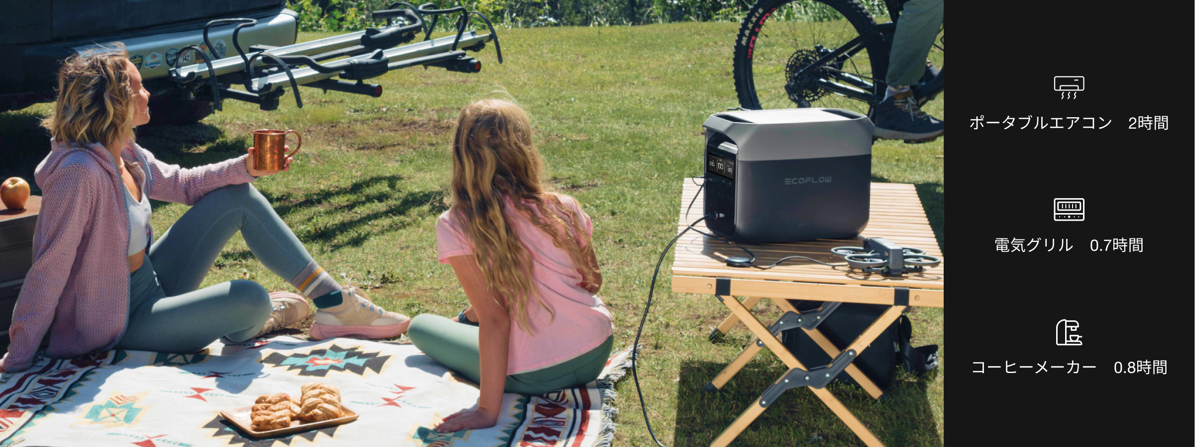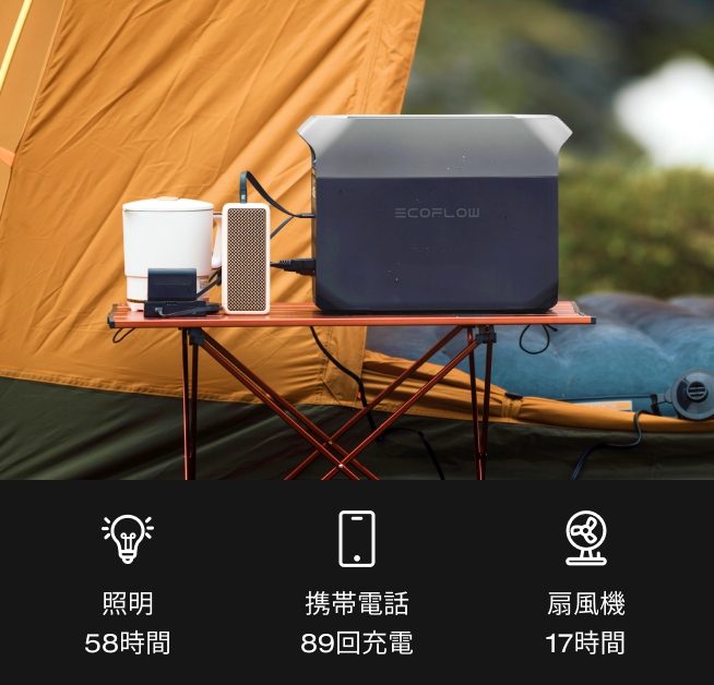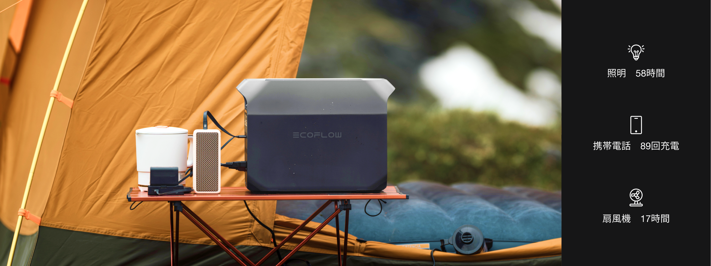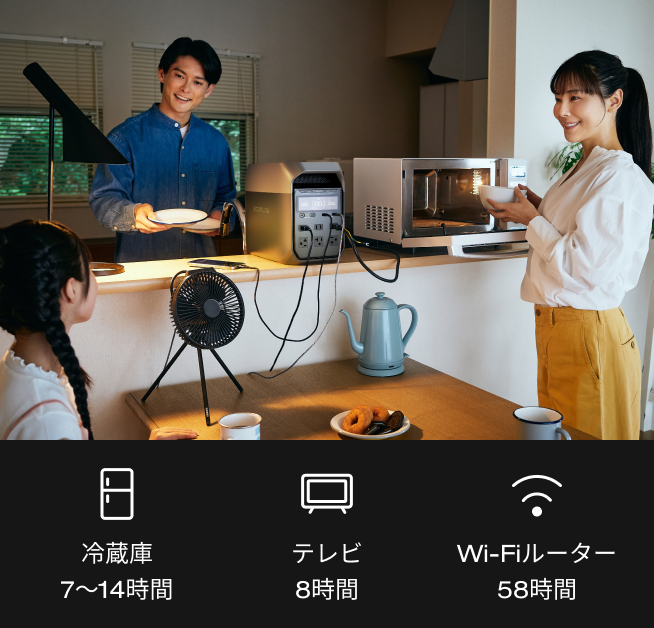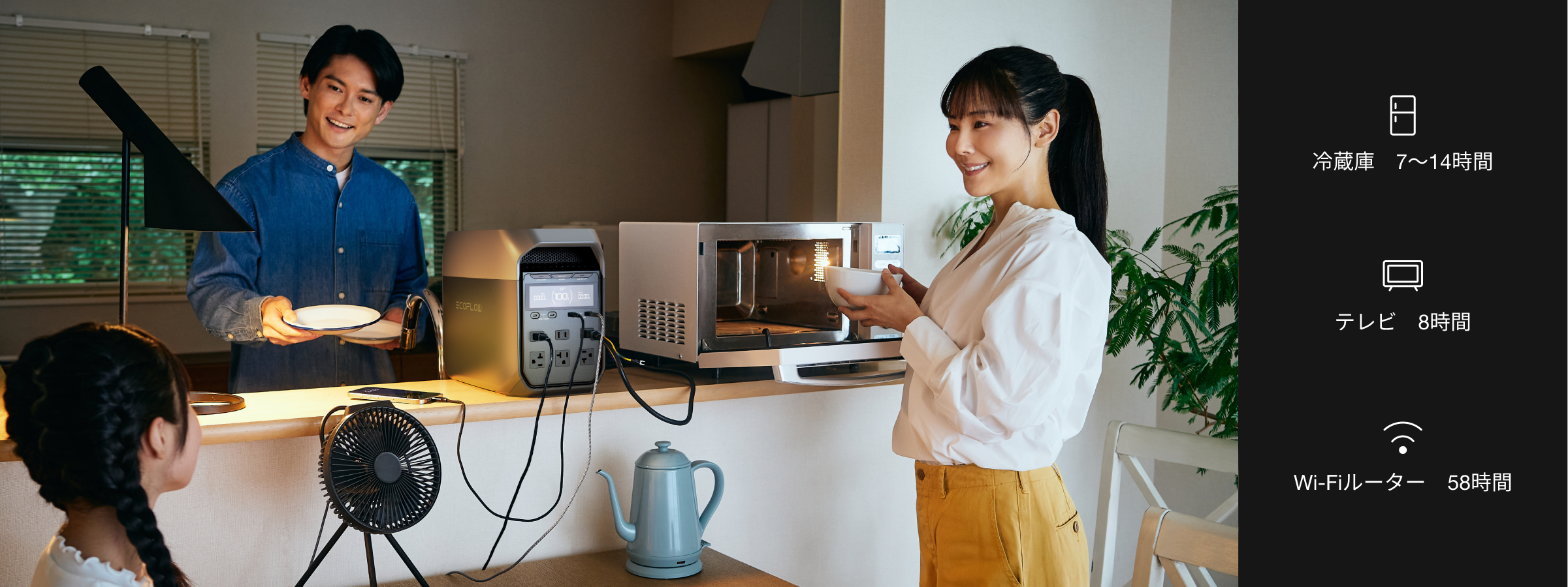 DELTA 3シリーズは1,500Wの出力で、冷蔵庫、テレビ、コンピュータ、オーブンなど99%の電化製品に電力を供給できます。X-Boostテクノロジーにより、最大2,000Wの電化製品(例:ヘアドライヤー1,800W)にも電力を供給できます。