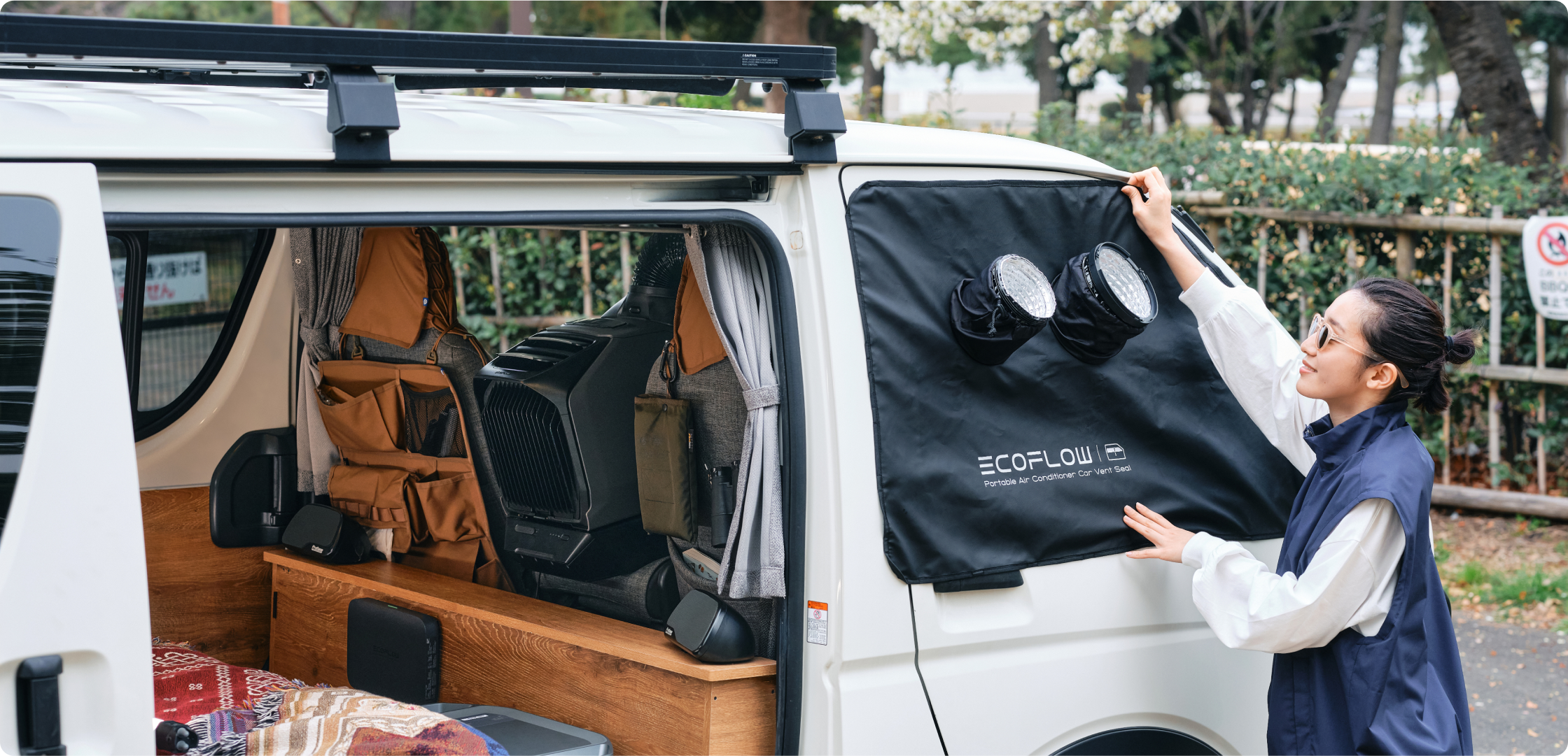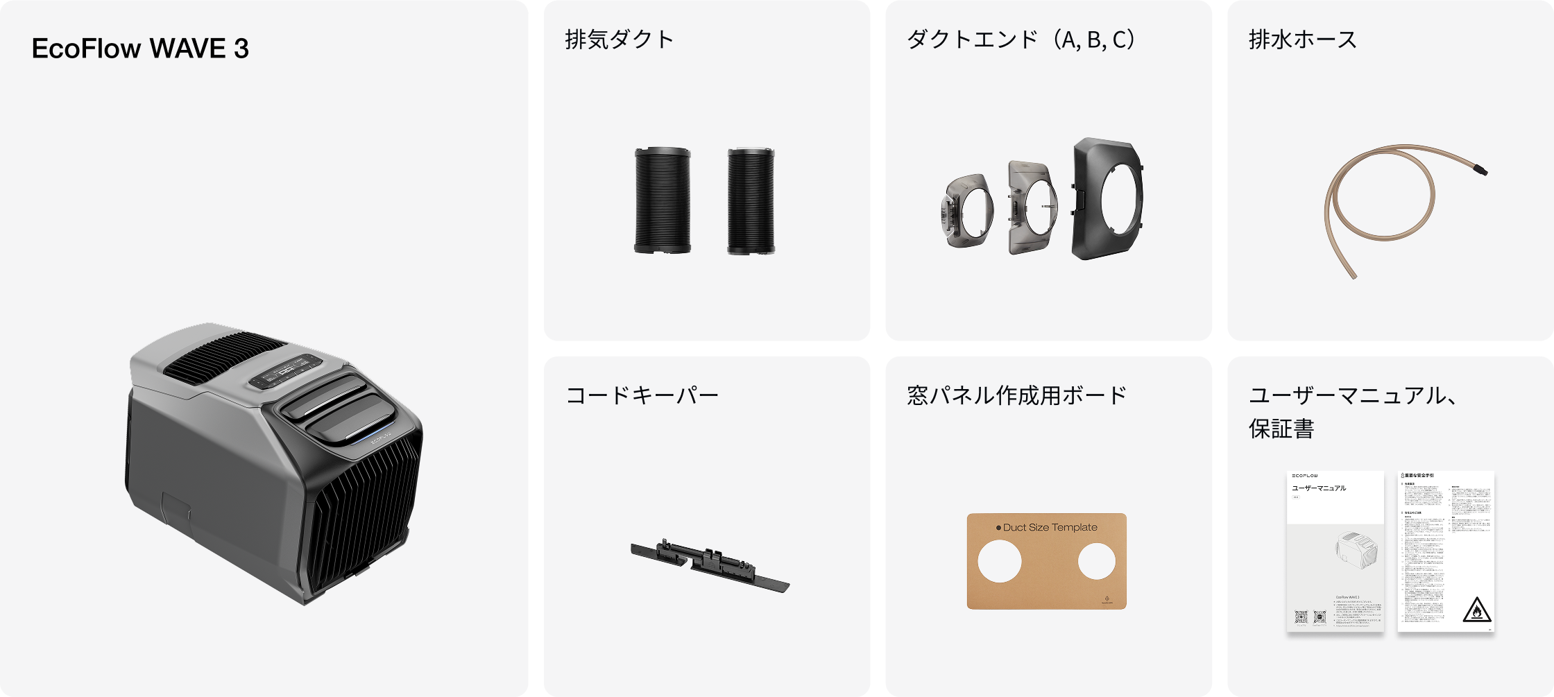 WAVE 3では、別売りアクセサリーに新たに窓シート(マグネット式)が追加されました。排気ダクトの取り付けがもっと便利になっただけでなく、車内の密閉性も向上して冷暖房効果を最大限に活かすことができます。また、ダクトホースもよりコンパクトになり、車内の省スペース化も。