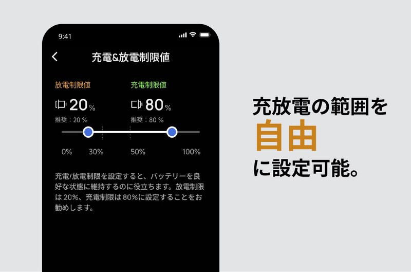 充放電を自由に設定、バッテリー寿命をさらに長く