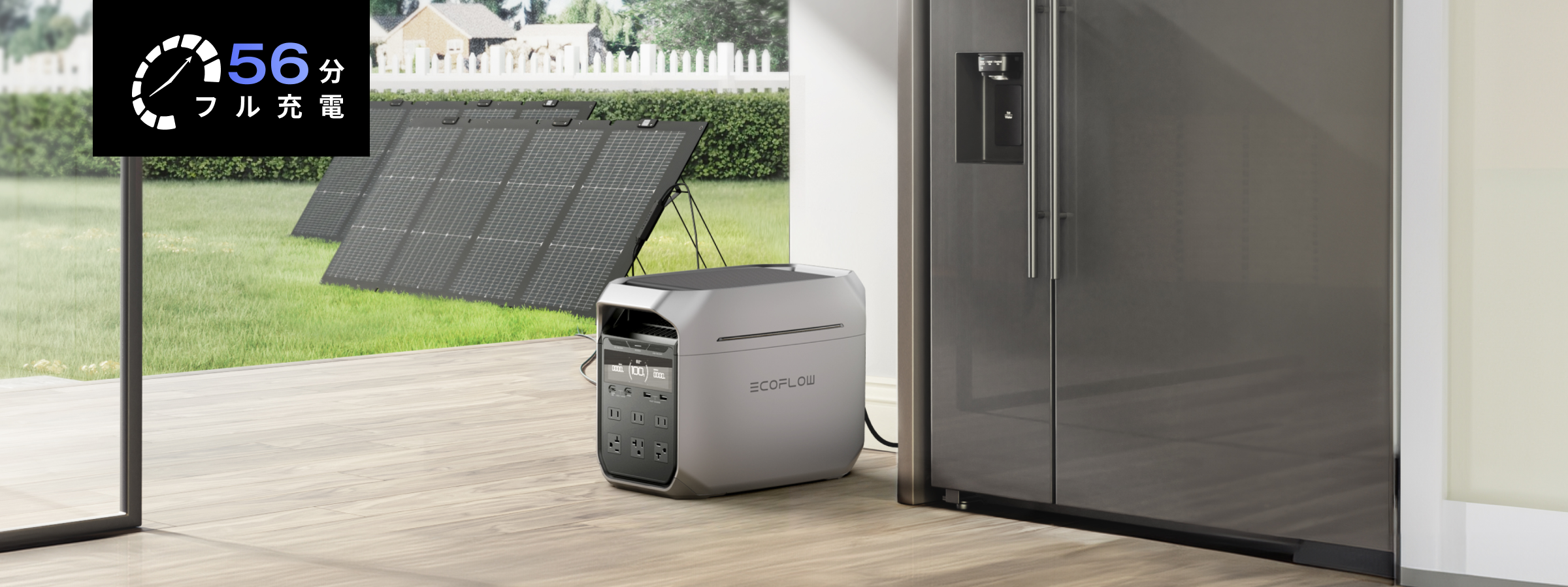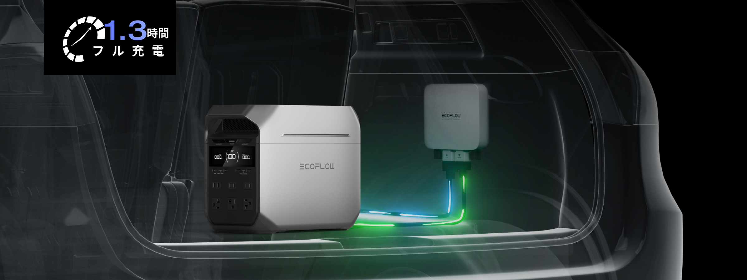 EcoFlow独自のX-Stream機能と1500W AC入力により、40分で80%、56分でフル充電可能。