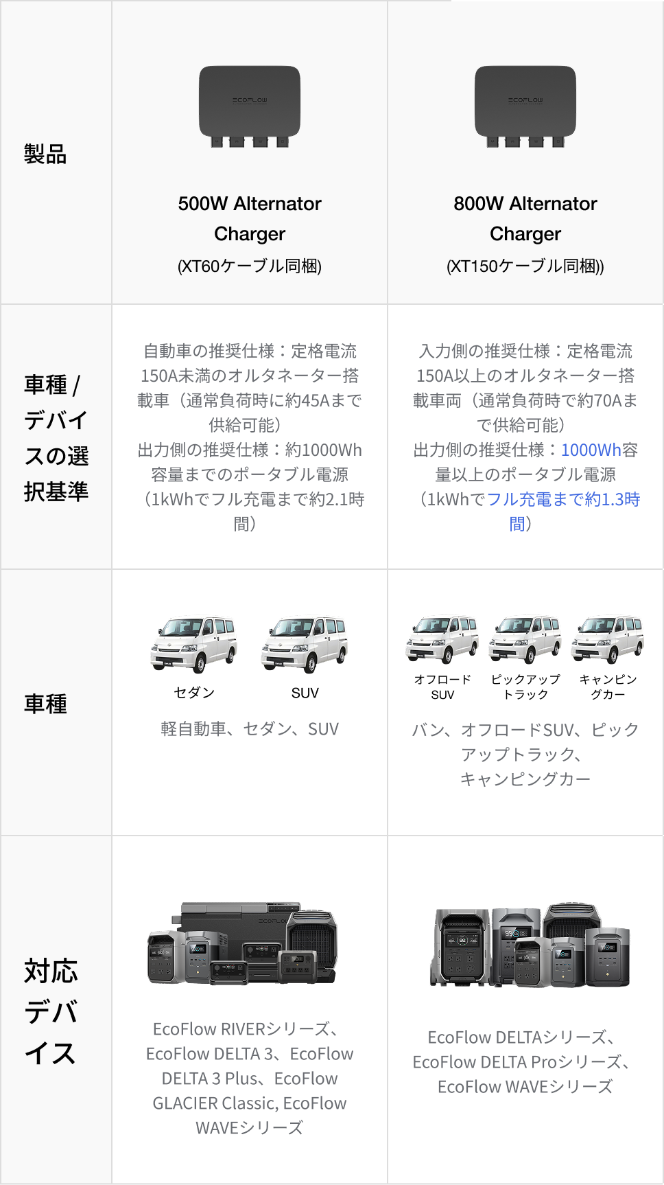 EcoFlow 800W Alternator Chargerは、従来のシガーソケットによる走行充電と比べて8倍