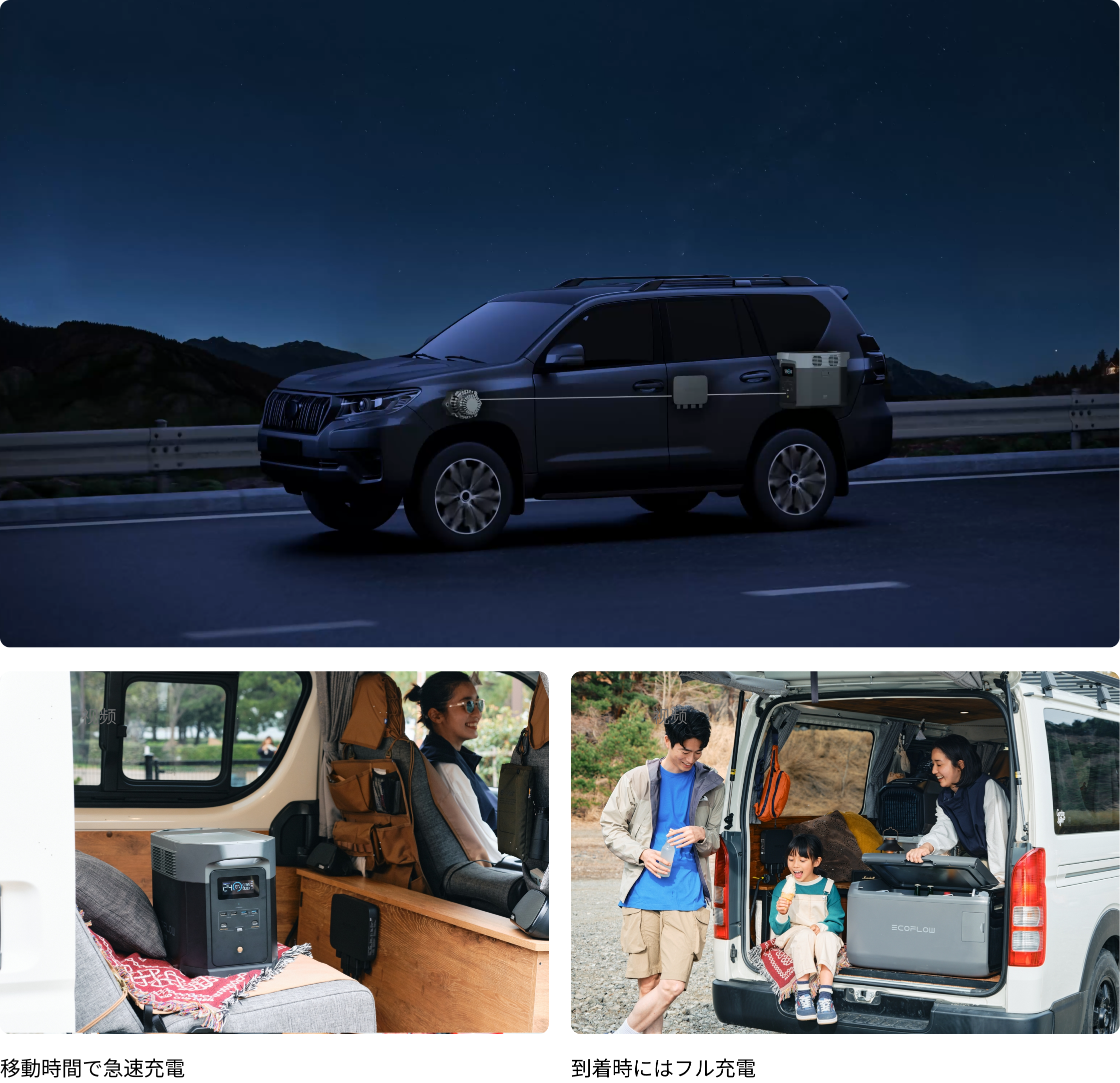 ラック、キャンピングカーまで、幅広い車中泊の電力ニーズに応えます。