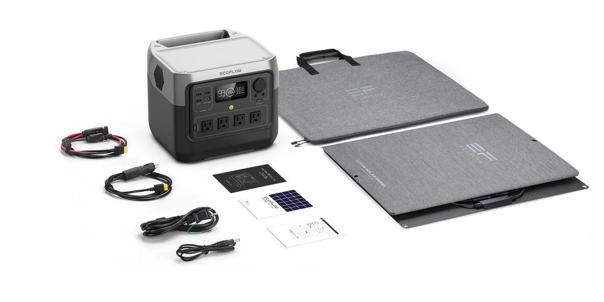 1. RIVER 2 Pro 2. AC 充電ケーブル 3. 車載シガーソケット充電ケーブル 4. DC5521-DC5525ケーブル 5. 取扱説明書及び保証書 6. 220W両面受光型ソーラーパネル 7. ソーラー充電ケーブル