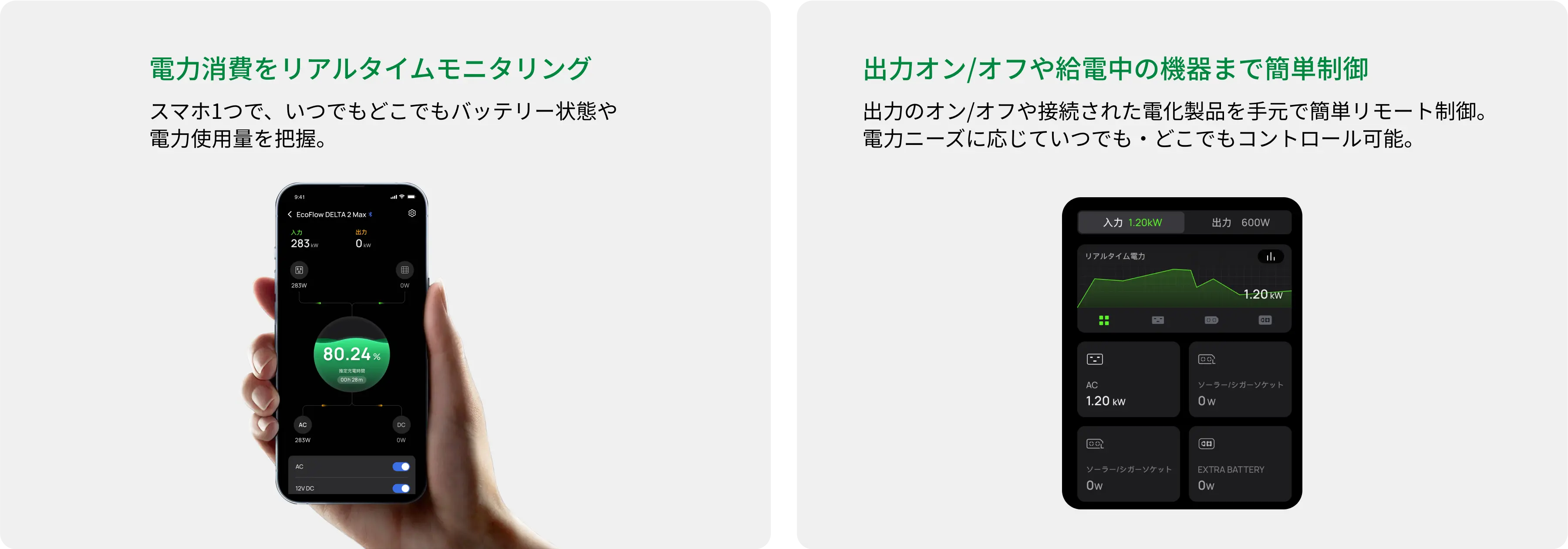 最大 2 個の DELTA 2 Max 専用エクストラバッテリー / DELTA Max 専用エクストラバッテリーをサポート