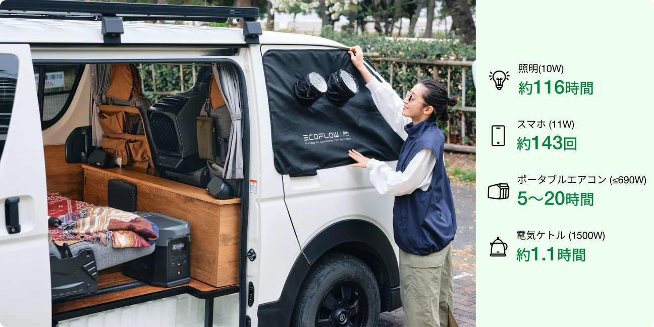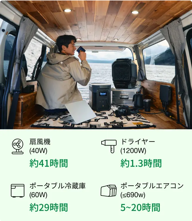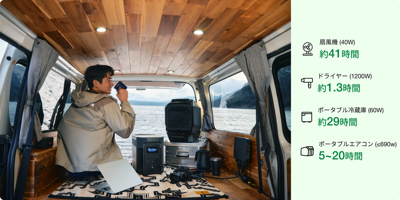 複数機器を同時に使えて、車中泊でも自宅のような快適さ