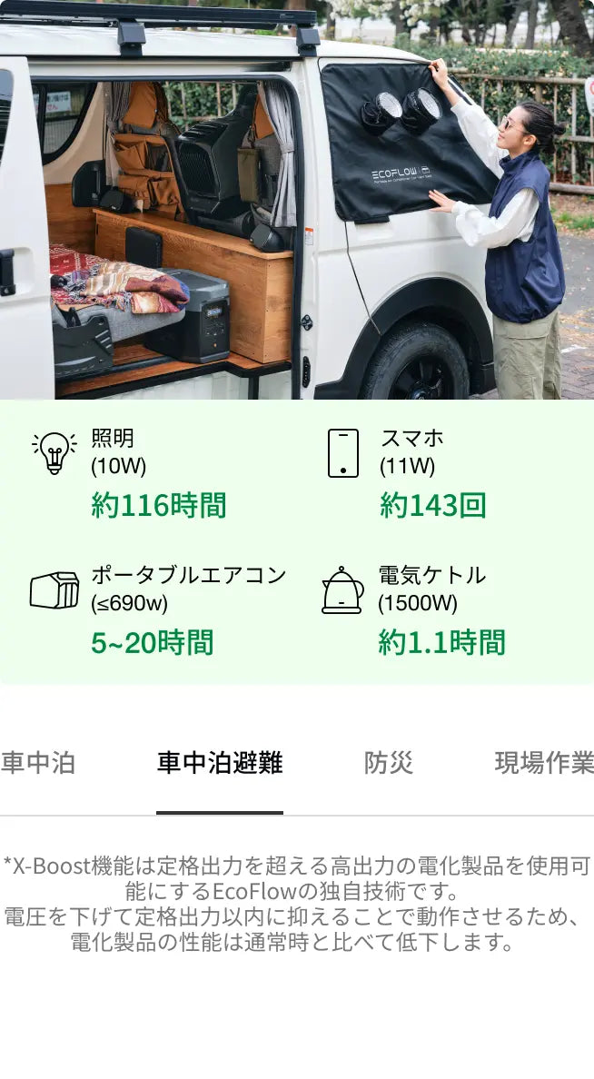 柔軟な容量拡張で大人数や長期間の車中泊でも安心