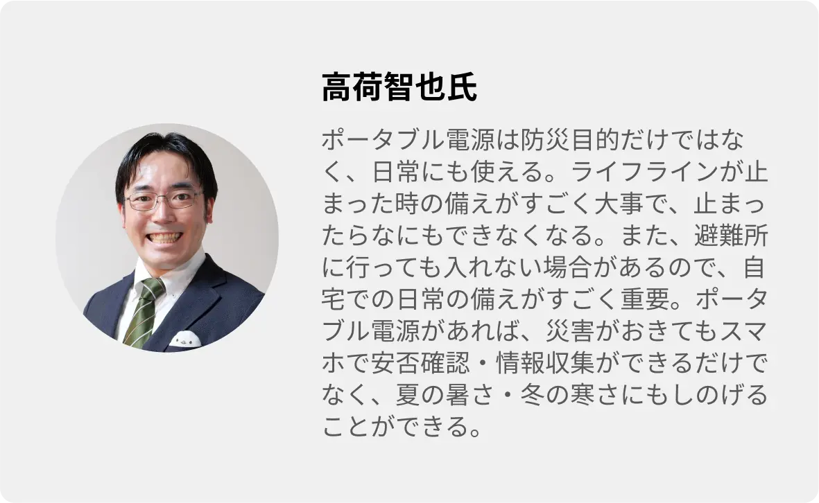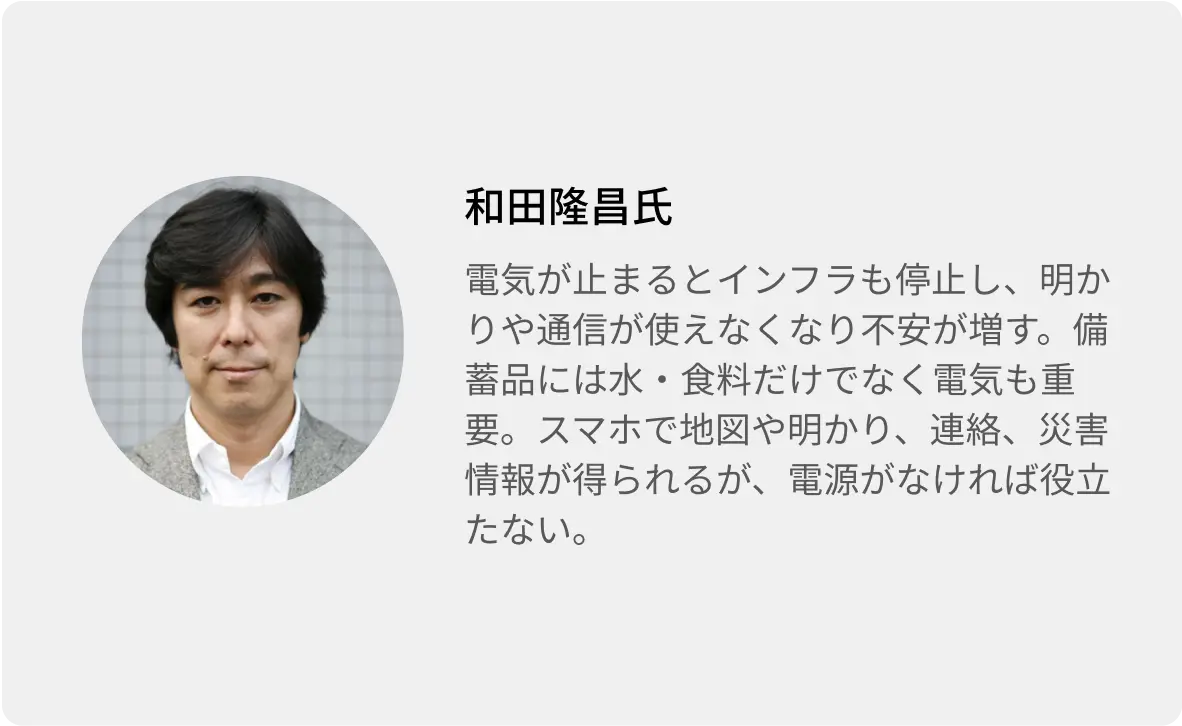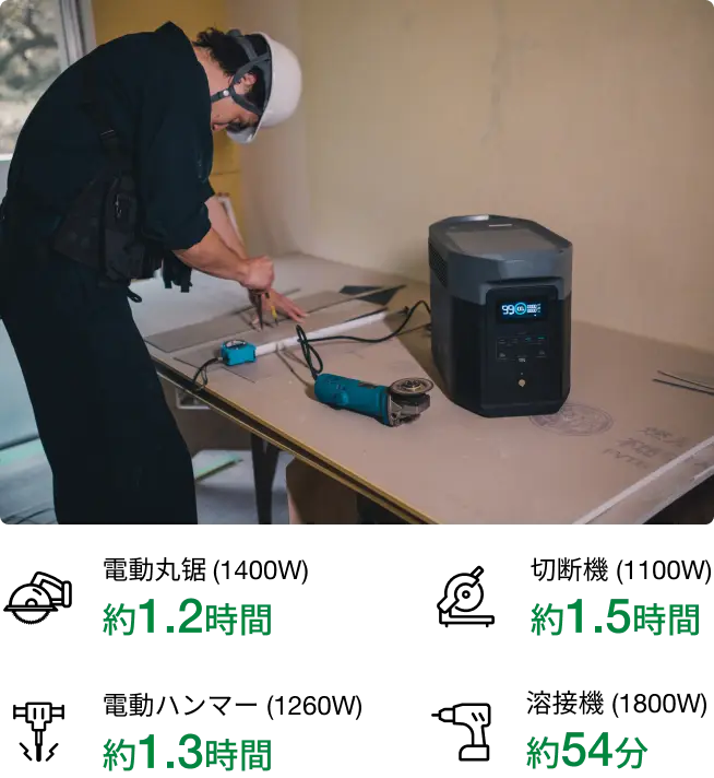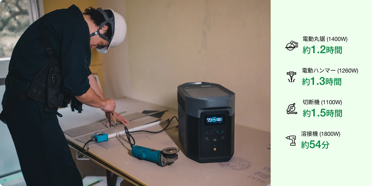 製品を稼働できるため、防災用や、工事・建築などの現場作業用にもおすすめです。
