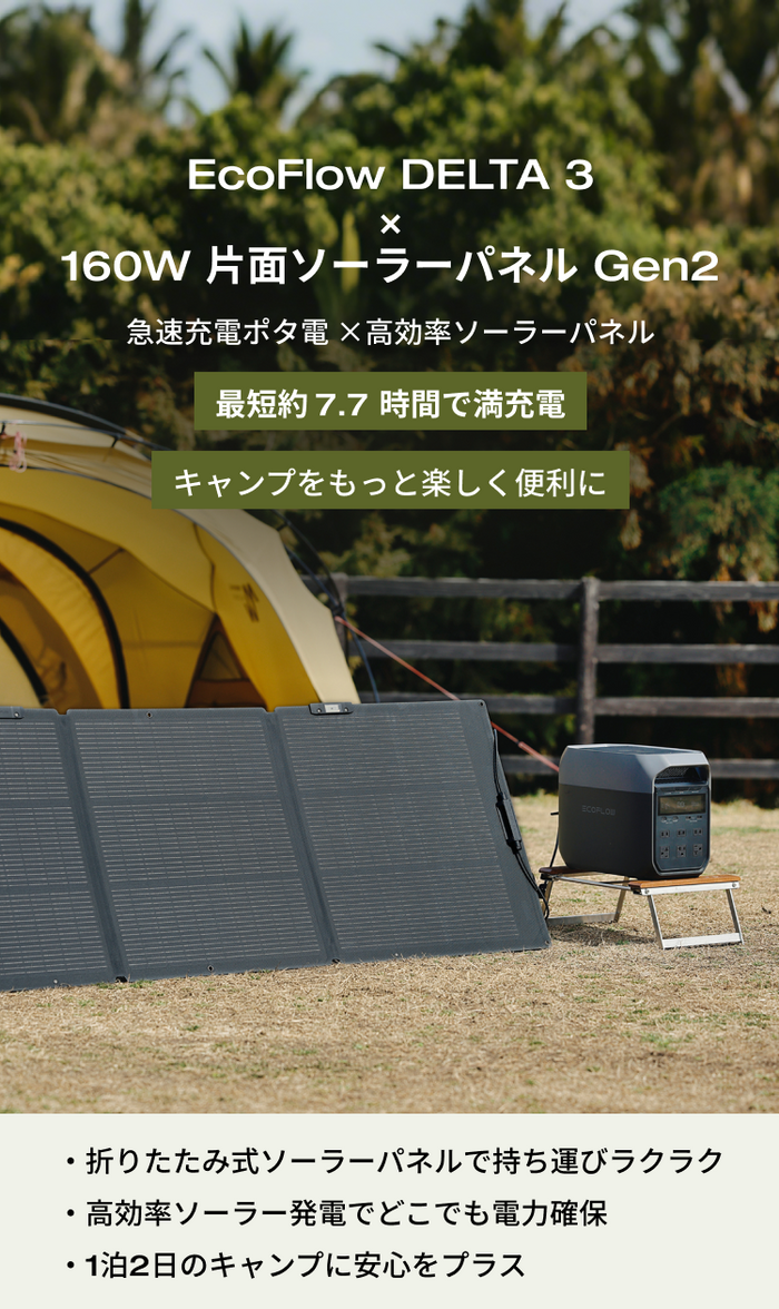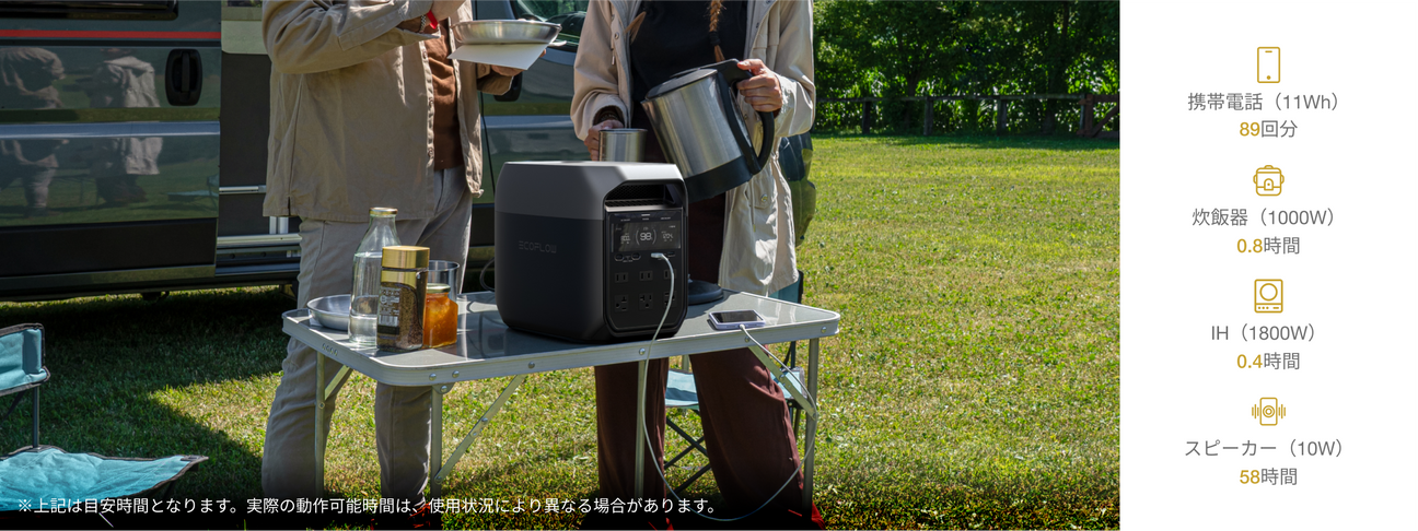 デイキャンプなどアウトドアに最適で、電力の心配をせずに楽しむことができます。