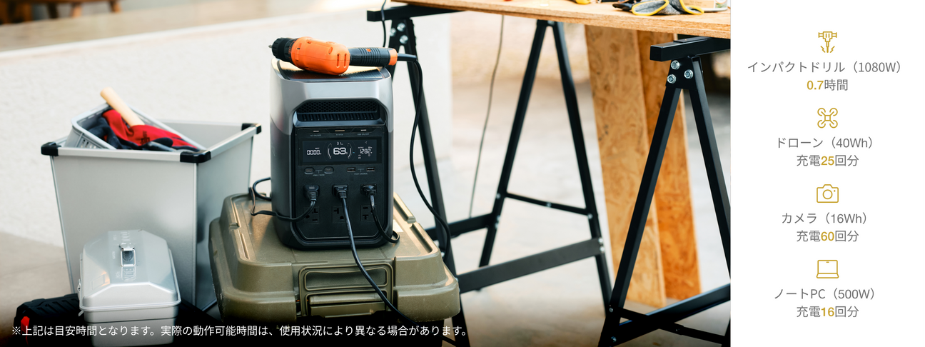 また、独自のX-Boost機能により、ヘアドライヤーなど最大2000Wの機器も稼働させることができるため、