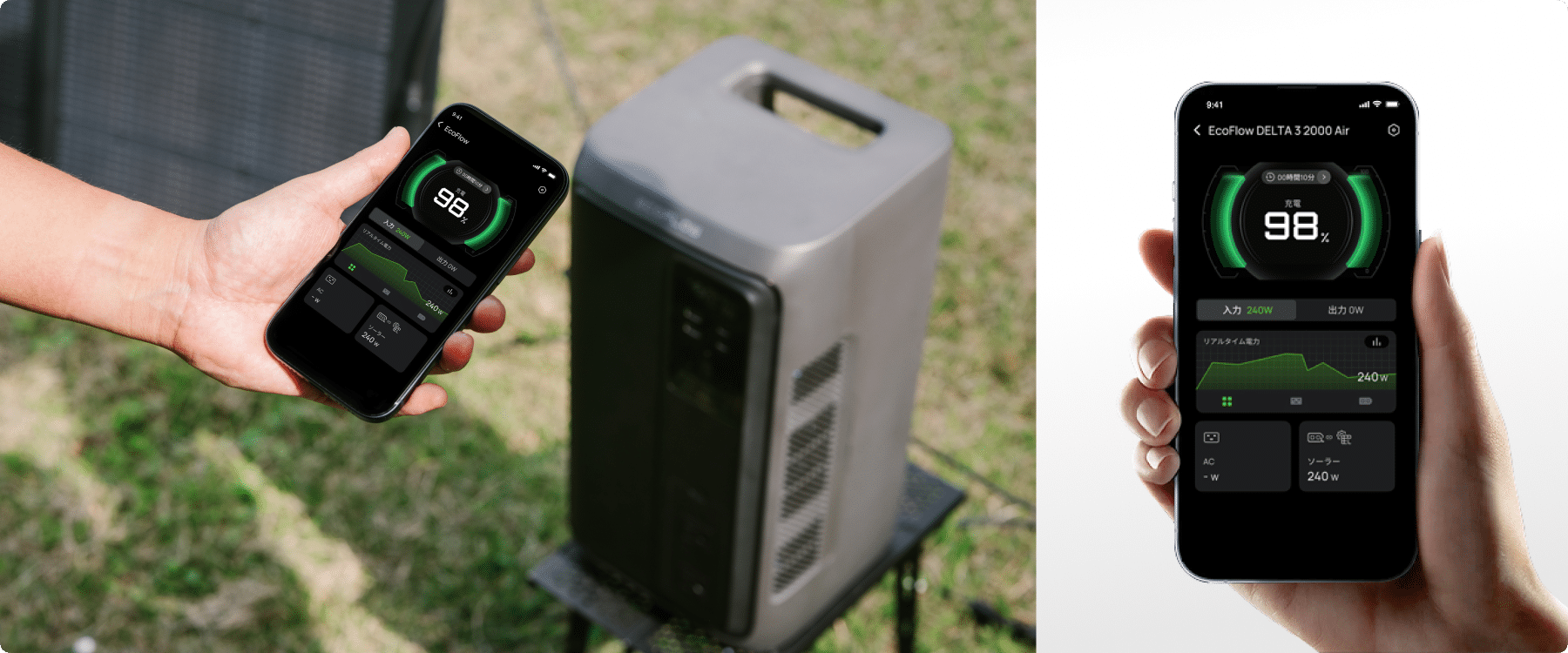 EcoFlowアプリと連携させれば、スマホ1つで入出力のオンオフ制御や、バッテリー残量の確認、使用状況の確認が可能。さらに充電スピードやスケジュール、通知設定も自在にカスタマイズできます。