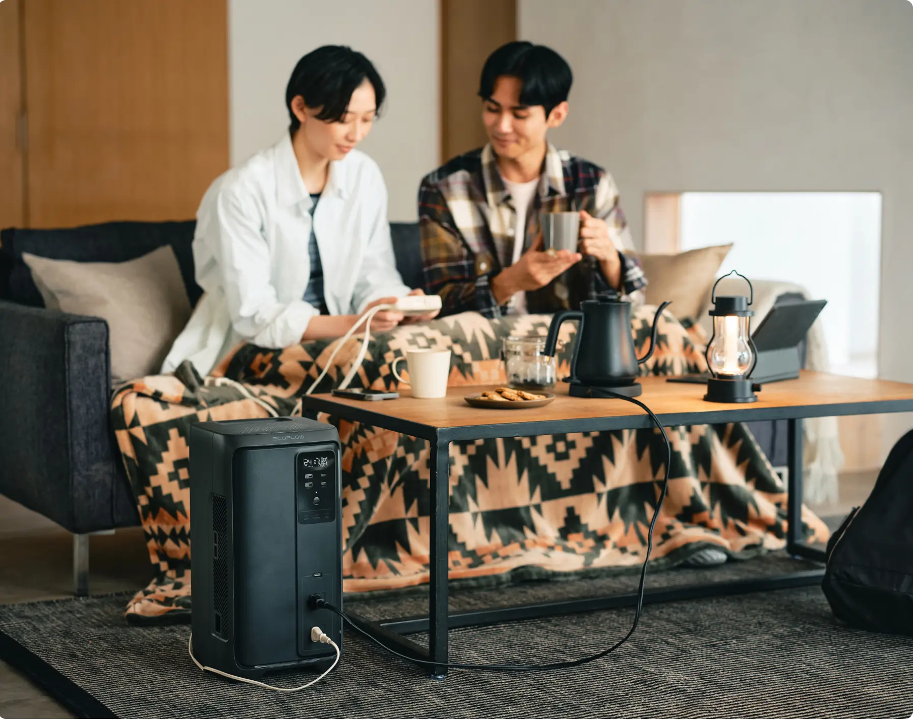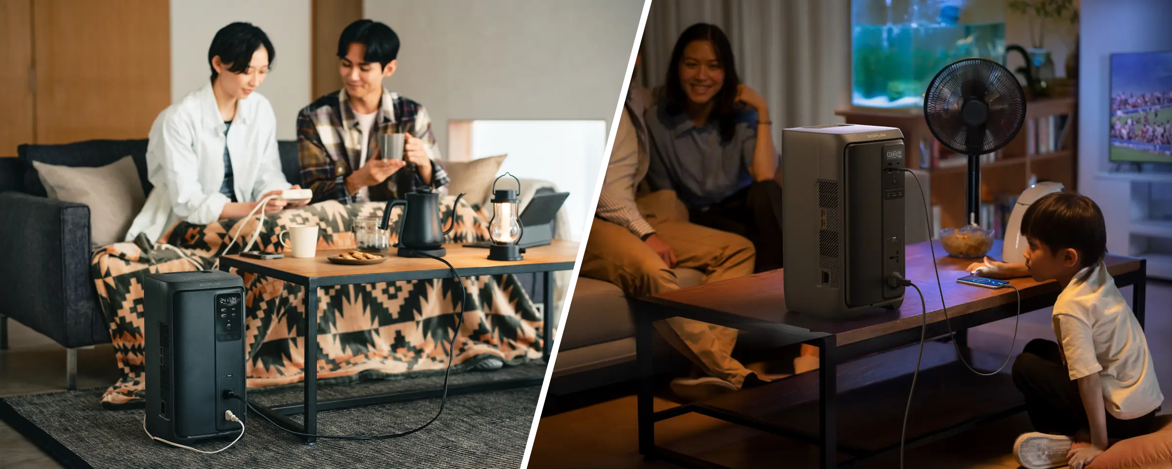 停電時、接続機器の電源を商用電源からDELTA 3 2000 Airに0.01秒未満で即座に切り替え*。冷蔵庫やPCなど、継続的な給電が重要な電化製品を突然の停電から守ります。