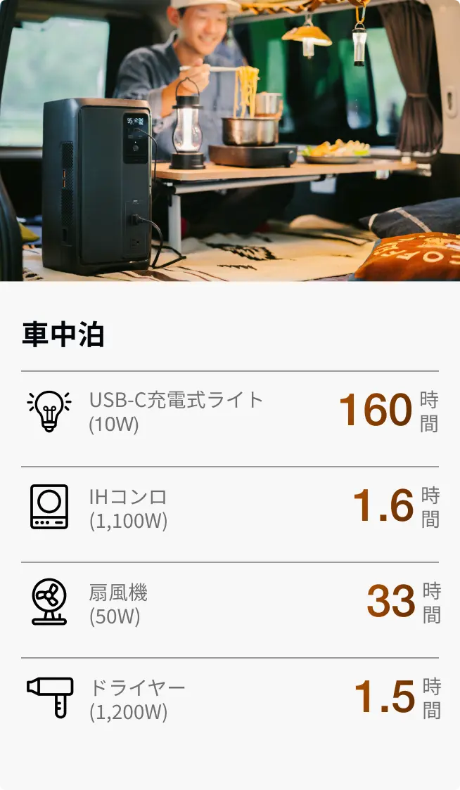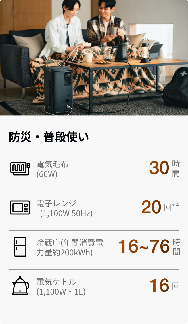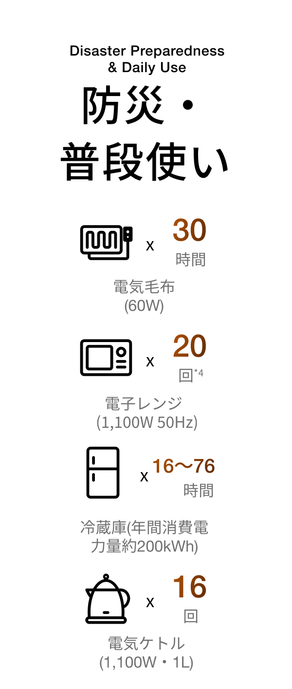 *¹ 2,000Vは日本の主流ポータブル電源の標準仕様(自社調べ、2025年10月時点)