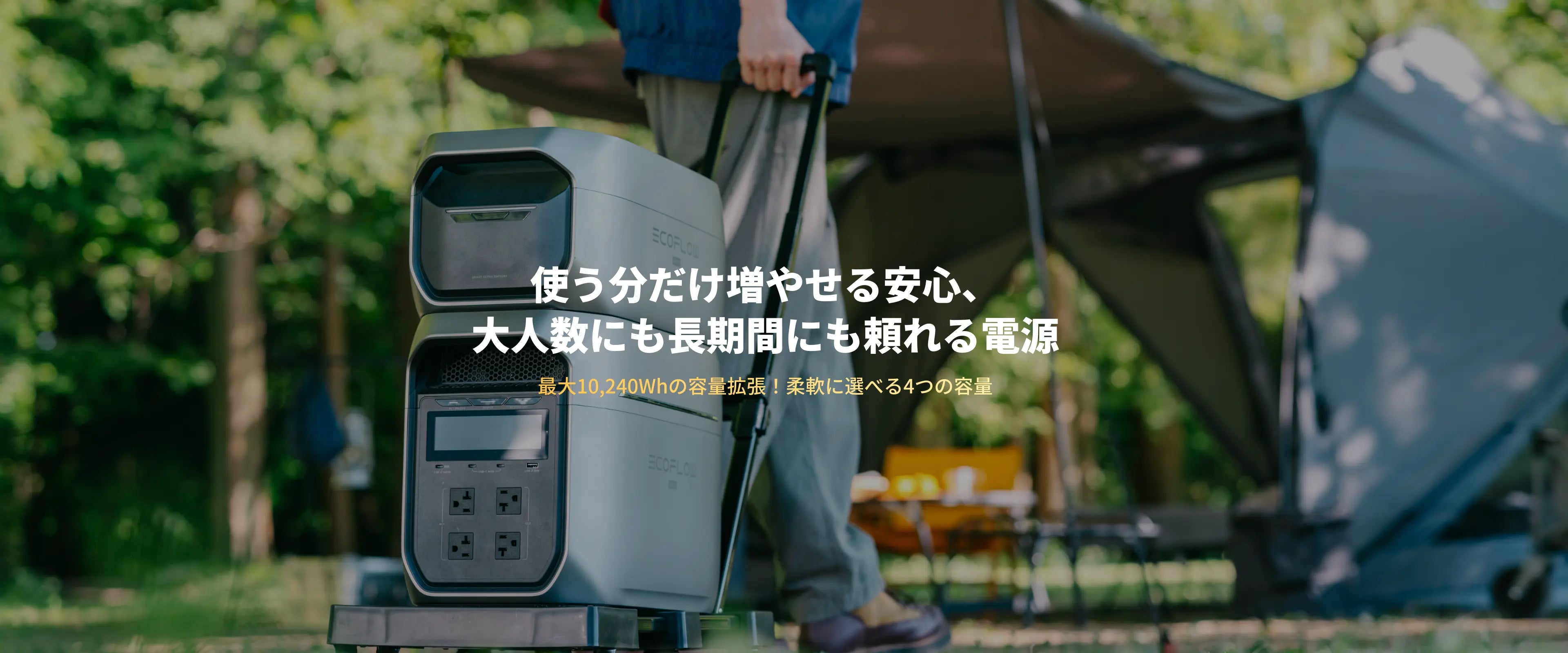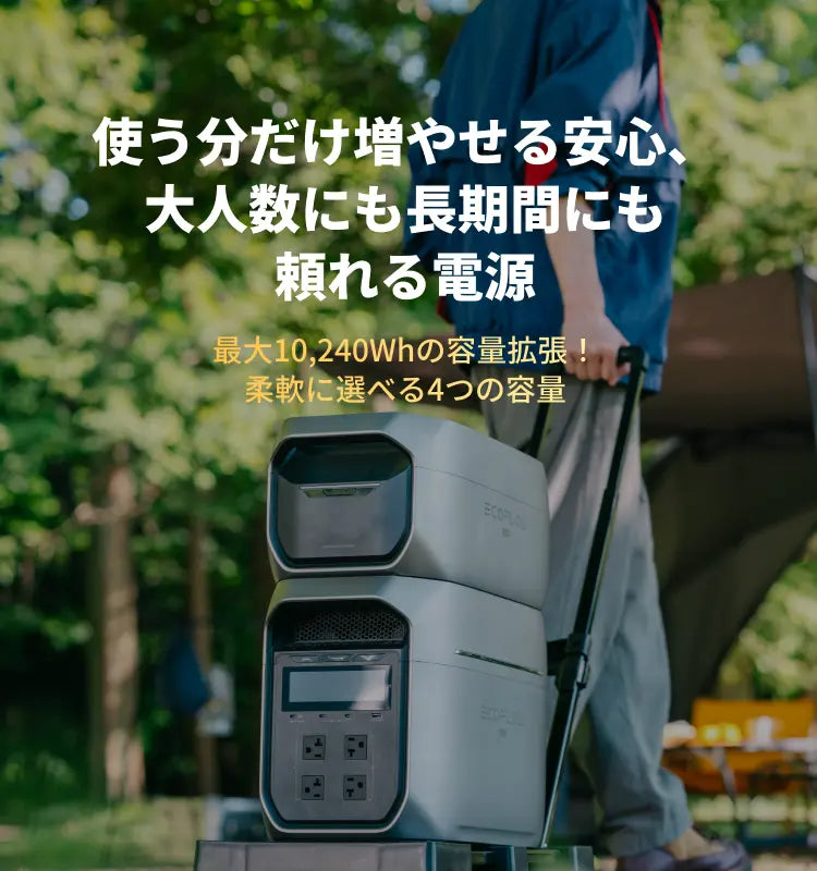 *1 DELTA Pro 3専用エクストラバッテリー2台接続時(画像はDELTA 3 Max Plus専用エクストラバッテリー)。エクストラバッテリーを2台接続するには、別売りの専用アクセサリー(2026年1月発売予定)が必要です。