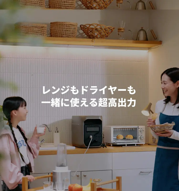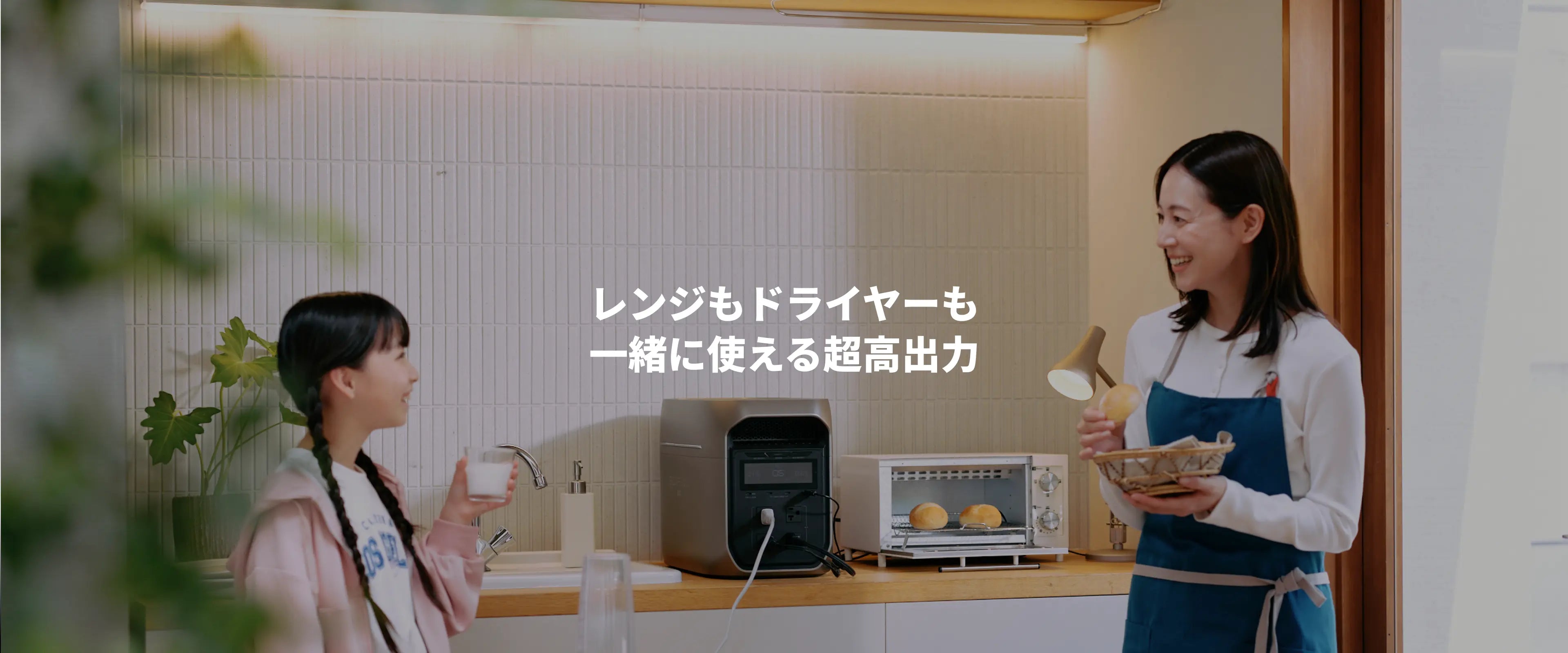 また、独自のX-Boost機能で最大3,800Wの機器にも対応し*²、複数の大電力機器を同時に稼働できます。