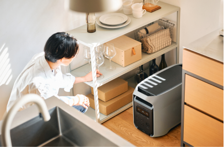 に自動で切り替えてバックアップ。突然の停電でも、PCや冷蔵庫などに継続的に給電できる安心機能です。