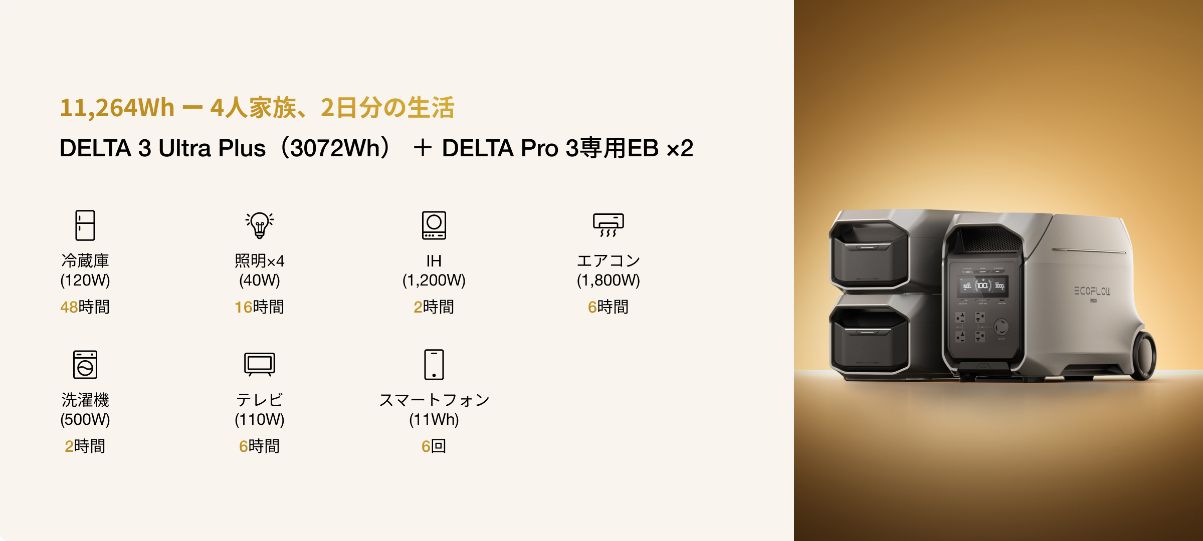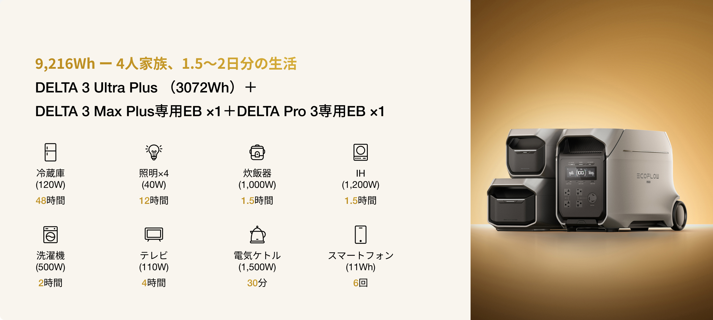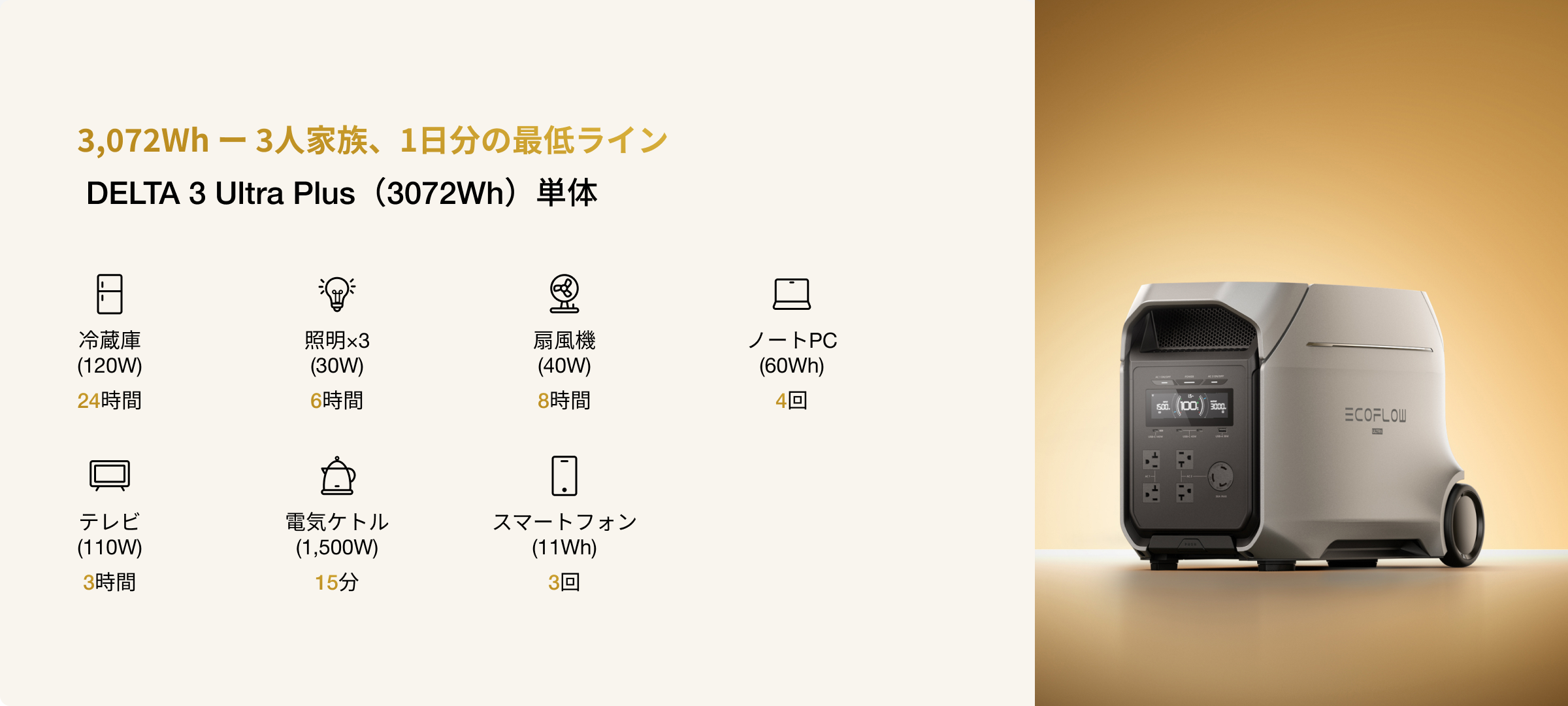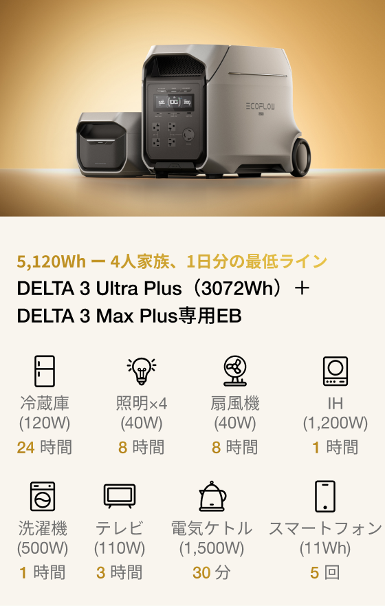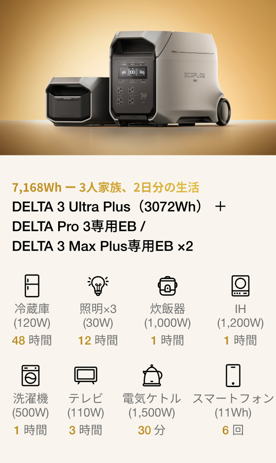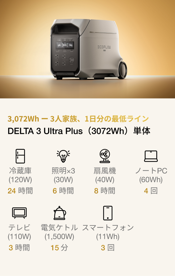 DELTA 3 Ultra Plus(3072Wh)なら、そんな心配は不要です。