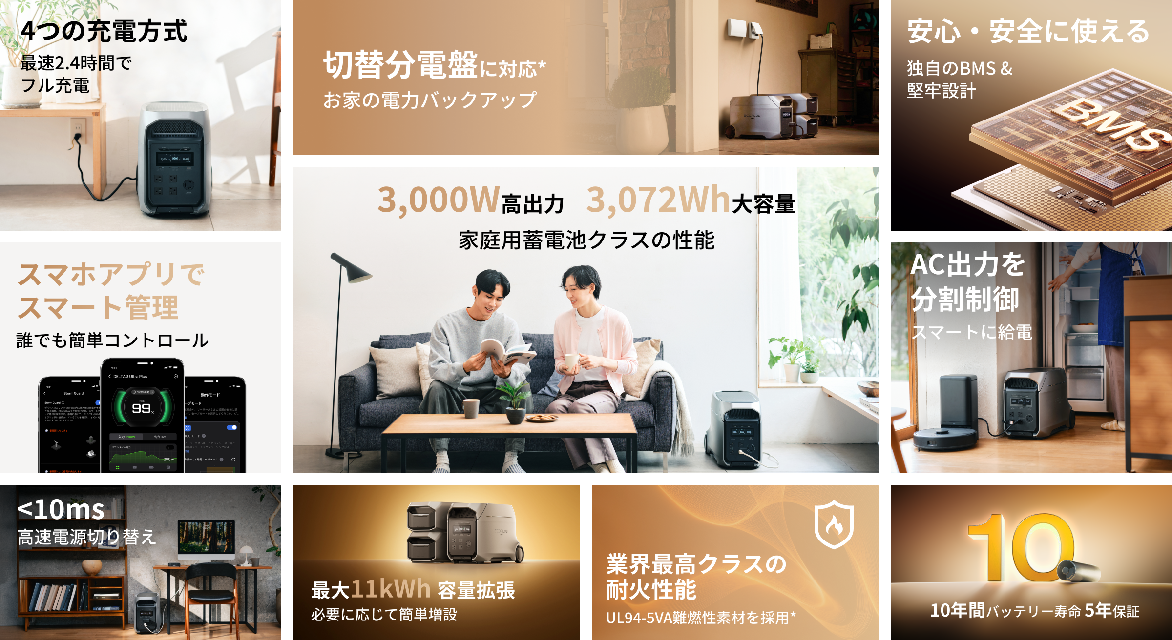 停電時、0.01秒未満で接続機器の電源を商用電源からDELTA 3 Ultra Plus(3072Wh)