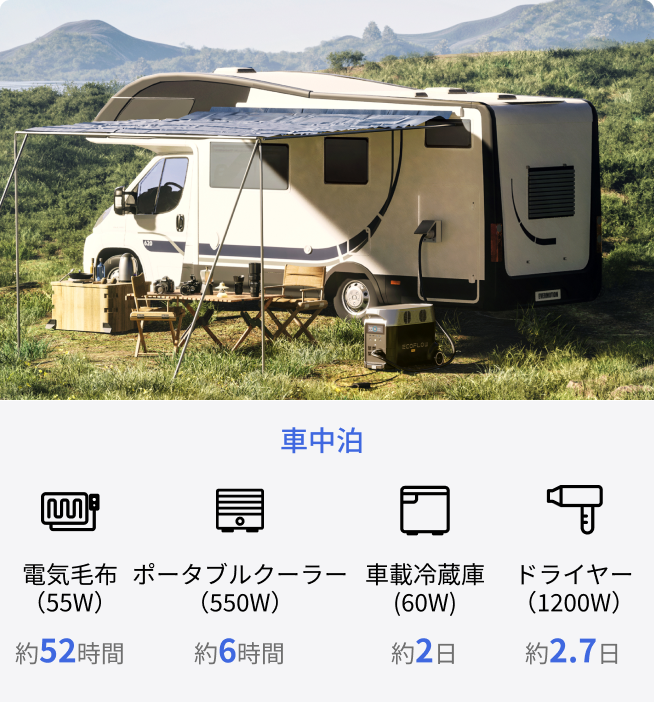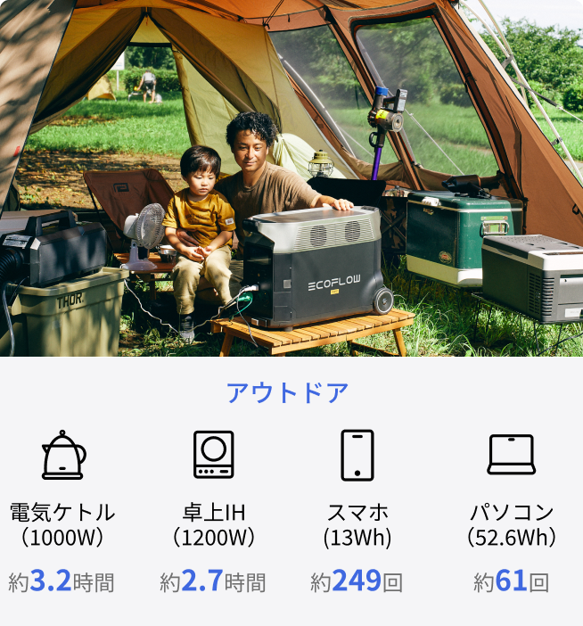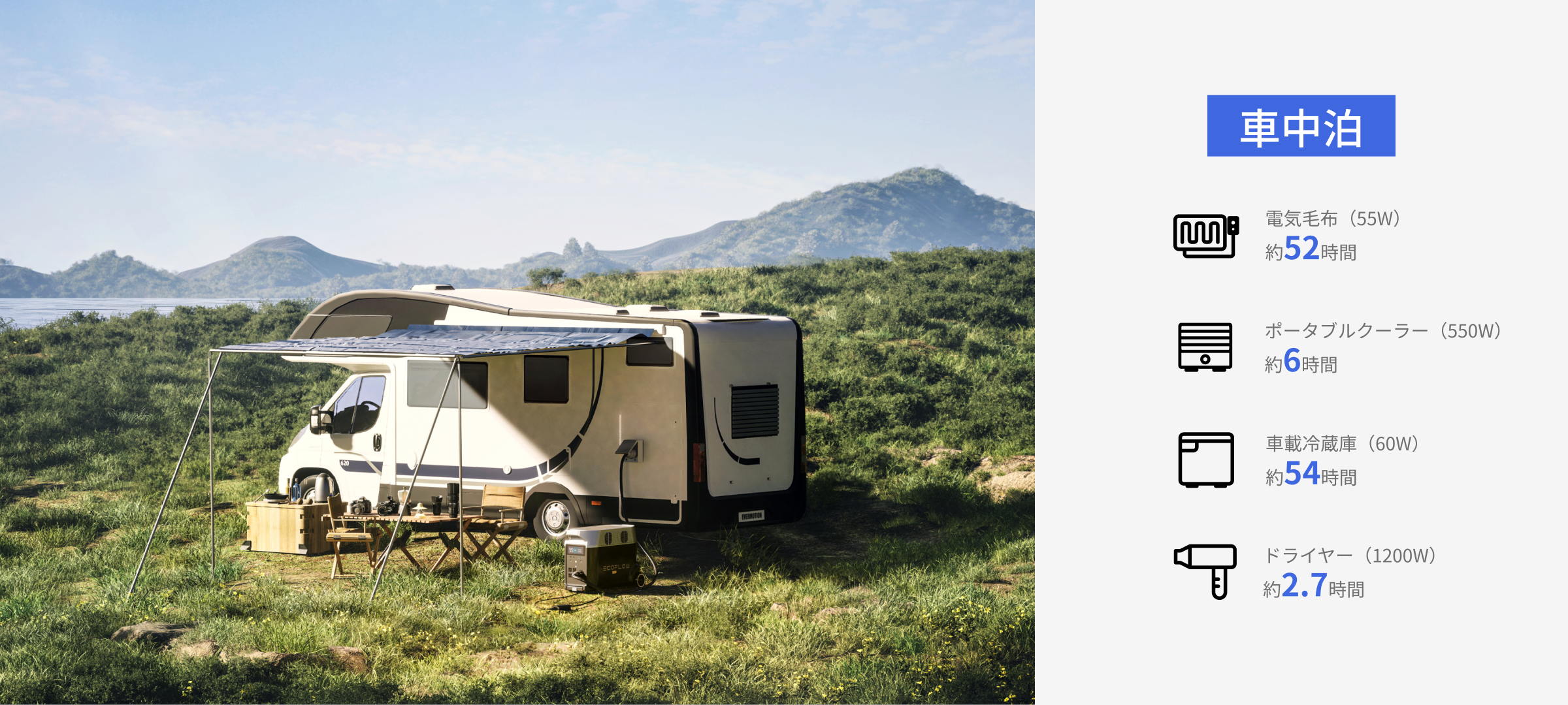 キャンプや車中泊、停電時の備えまで、日常から非常時までしっかり対応します。