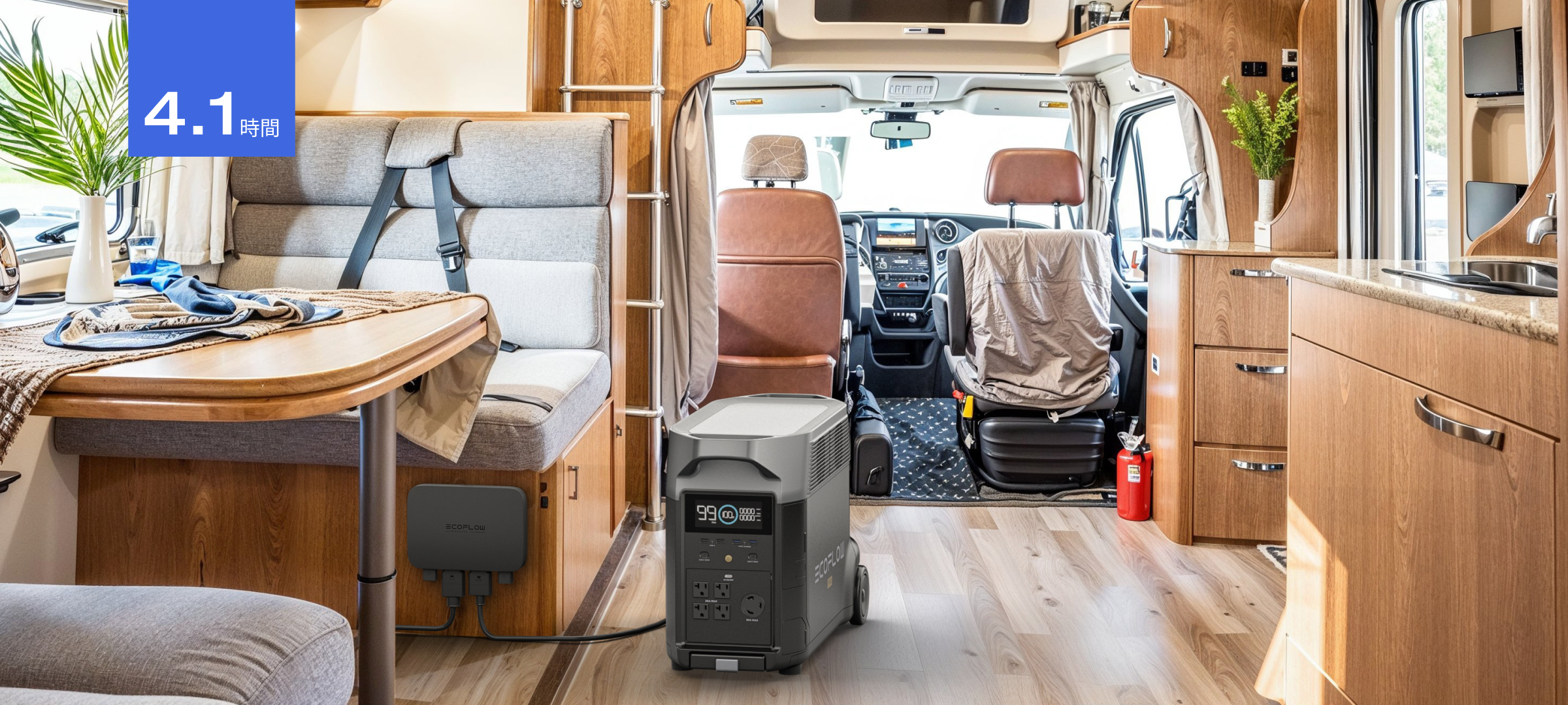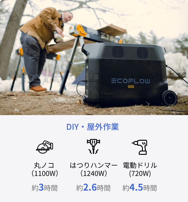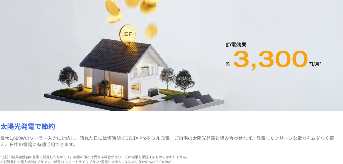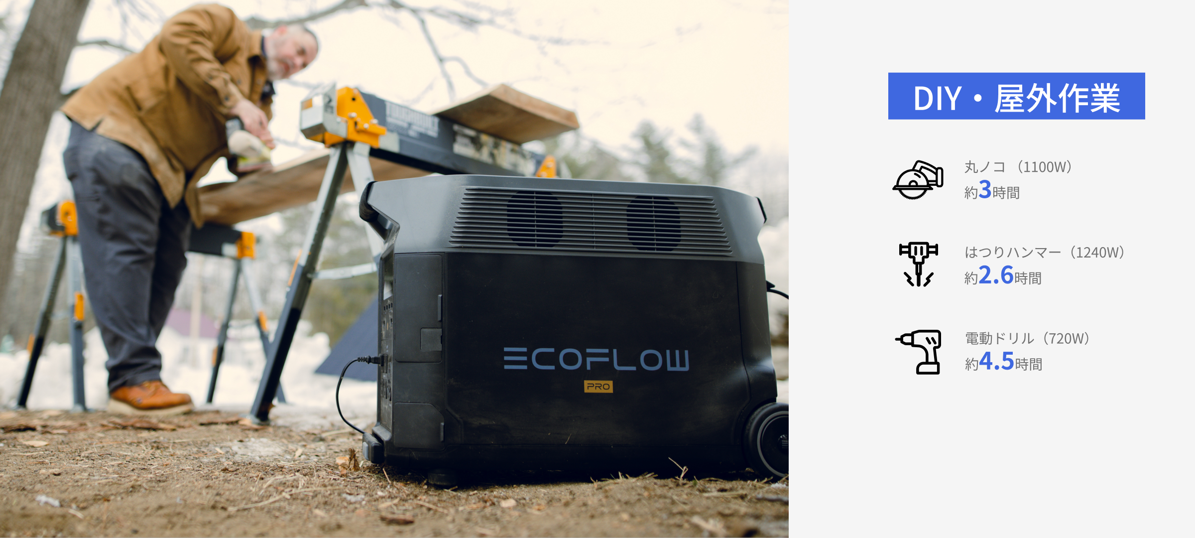 DELTA Proは、定格出力3,000W(サージ6,000W)、さらにX-Boostで最大3,750Wの家電の電圧を下げて稼働させることが可能です。