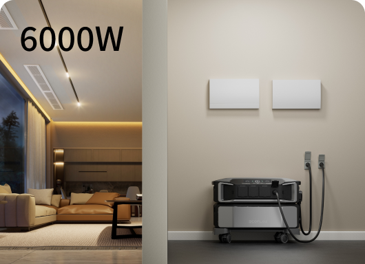 6,000Wという驚異の出力を誇るEcoFlow DELTA Pro Ultra インバーター1台で、大型エアコンやIHクッキングヒーター、さらには業務用の溶接機や電動工具など消費電力の高いあらゆる電化製品に電力を供給することができます。また最大入力で充電しながら最大出力を出すことができるX-Fusionと呼ばれる独自技術が搭載されており、6,000W出力が確保されます。