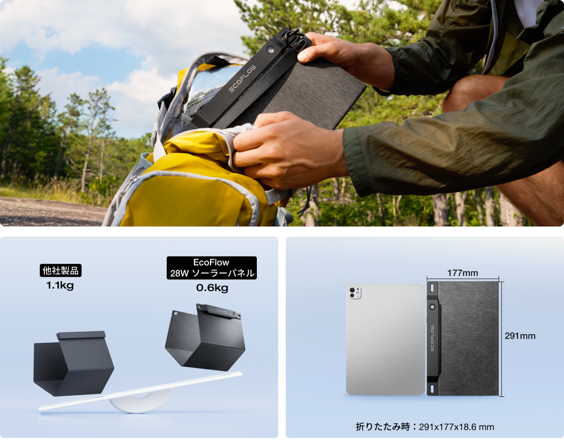 超コンパクトな上に折りたたみもできて、どんな場所でも太陽光のパワーを持ち運び。