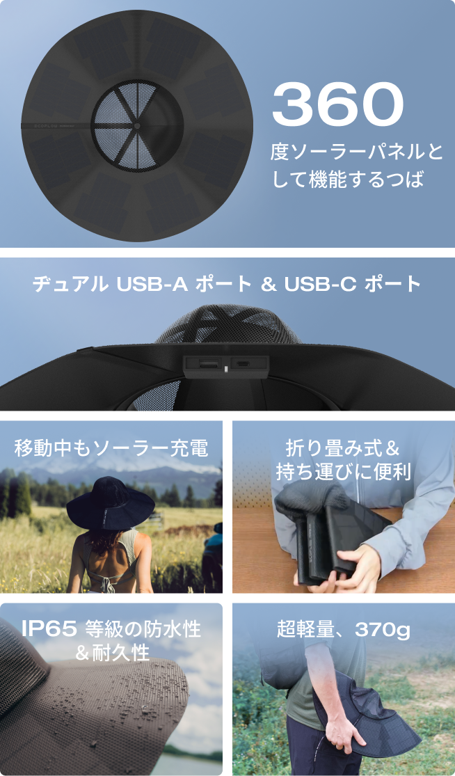 EcoFlow Power Hatは太陽光に対して常に最適な角度を維持するため、
