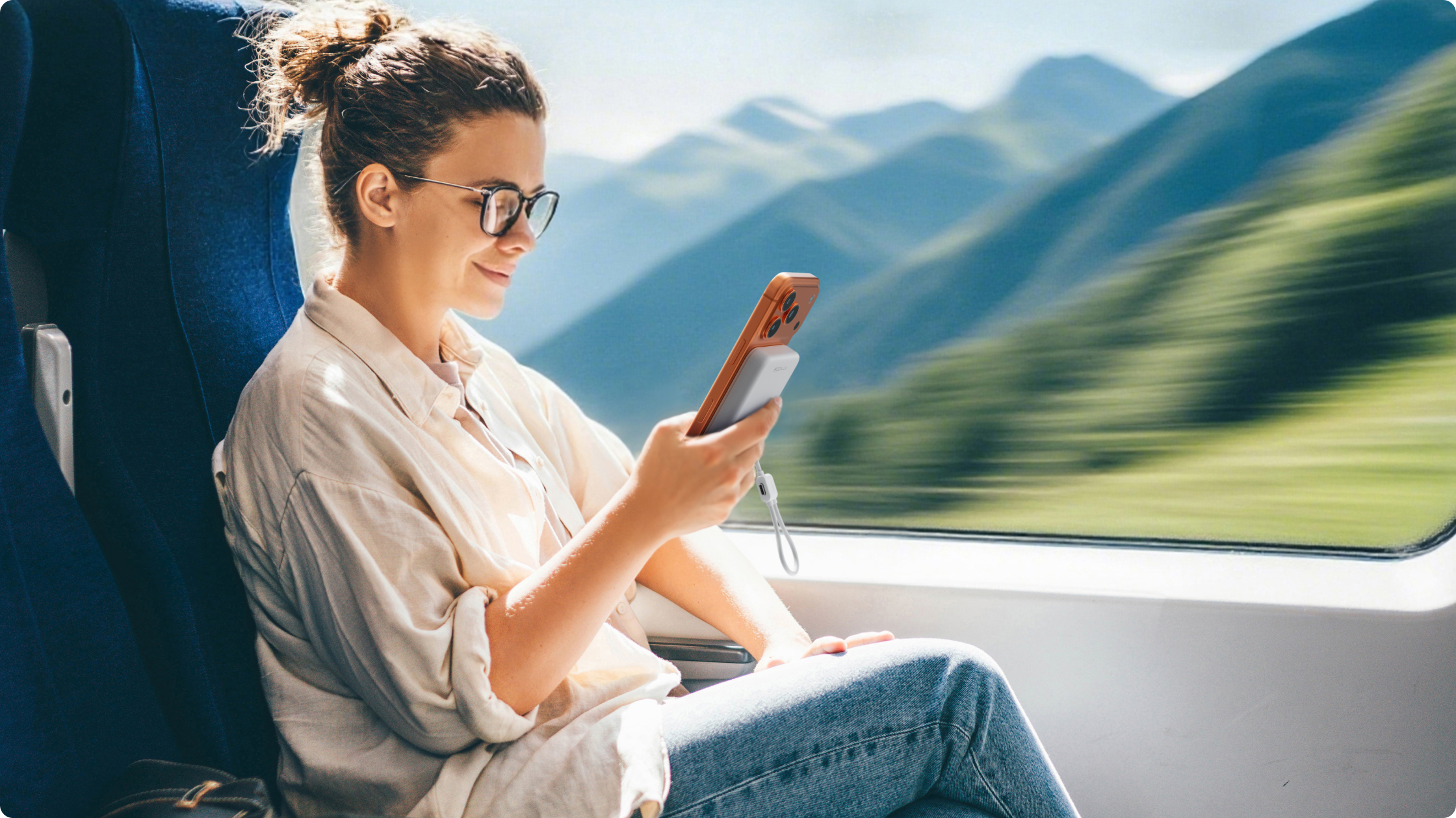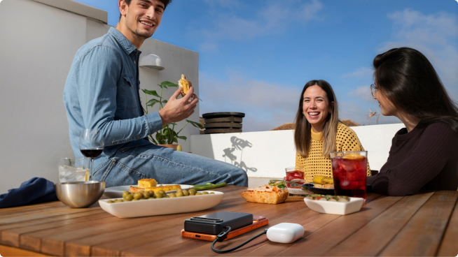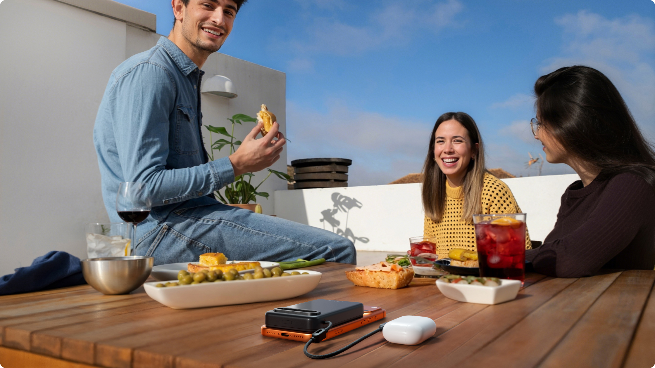 パススルー充電対応により、本体を充電しながら他のデバイスに給電可能。充電中のRAPIDが、お手軽ワイヤレス充電パッドに。寝ている間、充電中のRAPIDにスマホを置いておくだけで、翌朝にはどちらもしっかりフル充電。