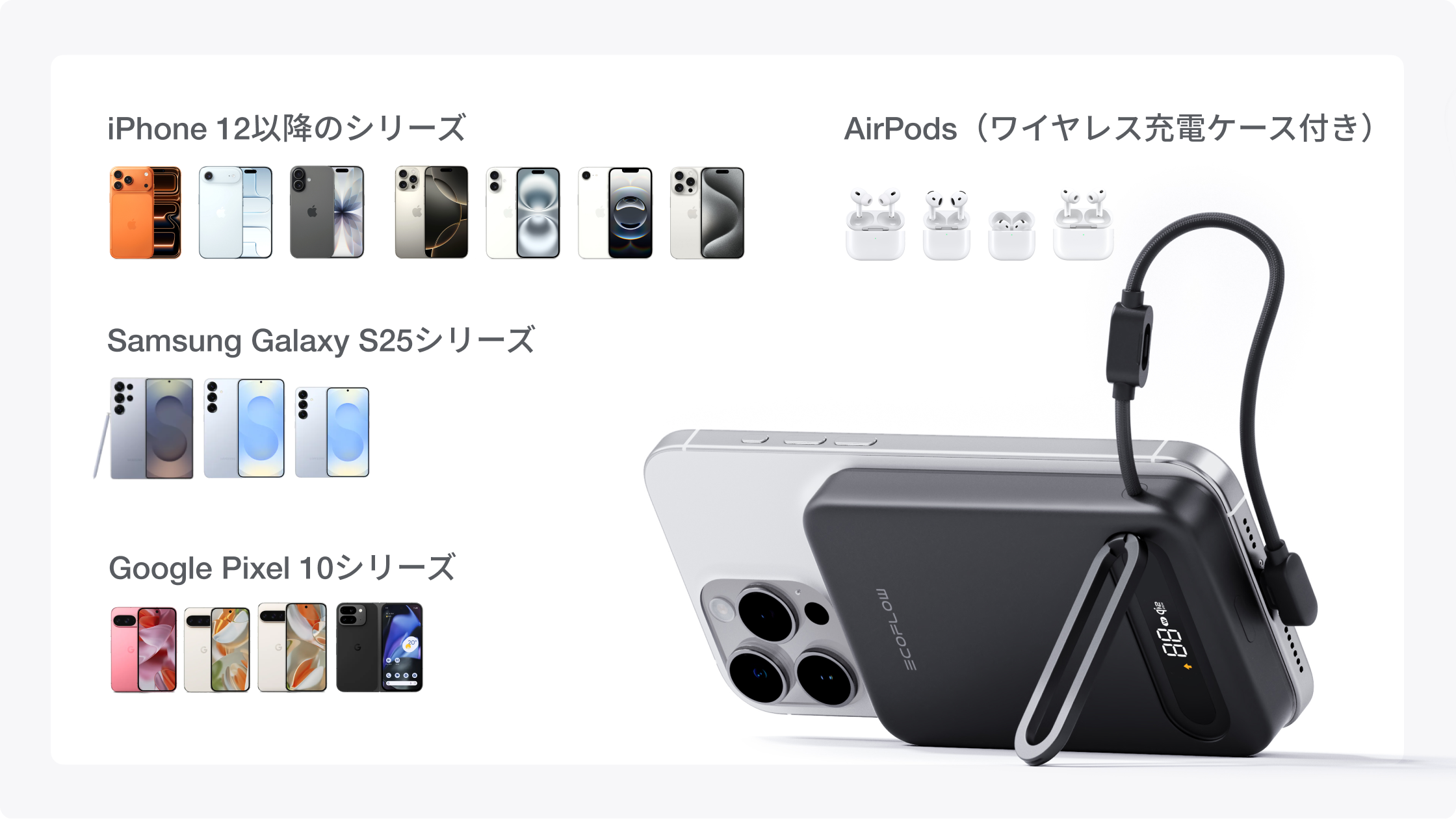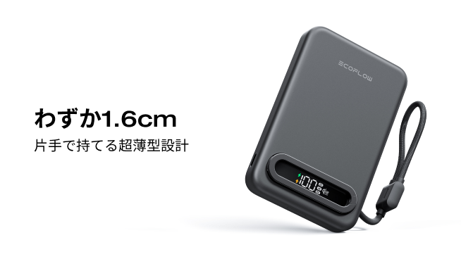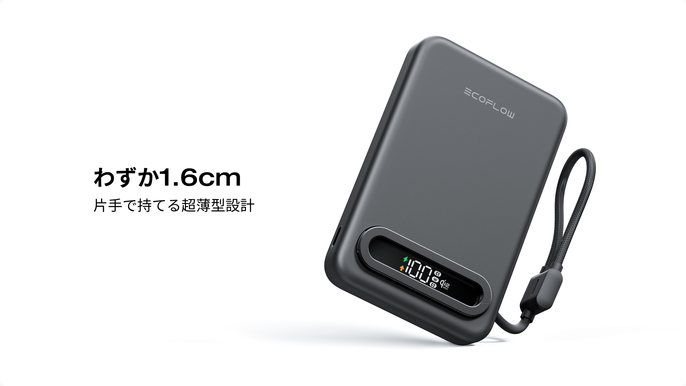 Qi2.2 25Wワイヤレス充電対応 EcoFlow RAPID Mag Power Bank(USB-Cケーブル内蔵,10,000mAh)