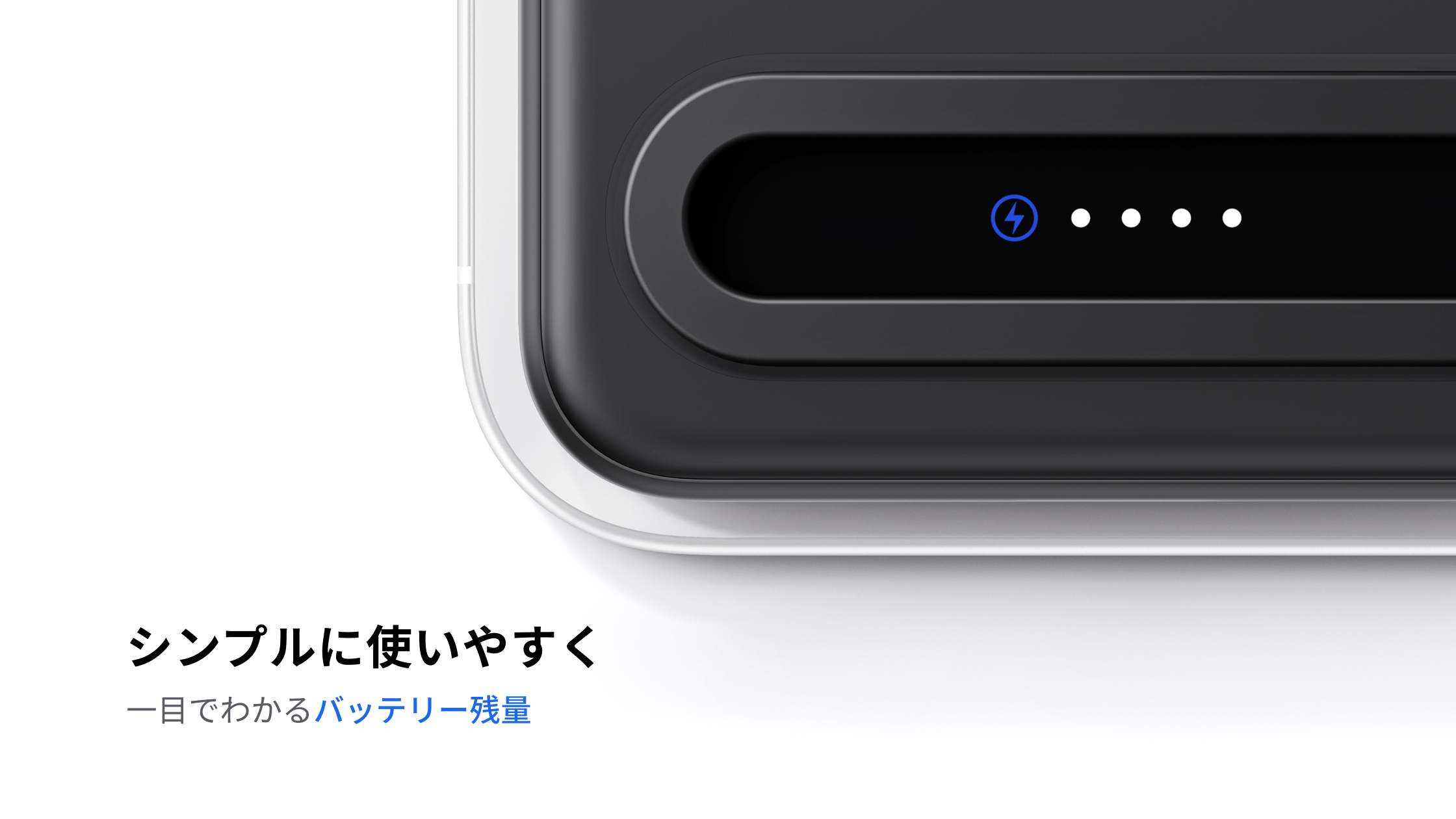 シンプルなLEDライト表示により、バッテリー残量を一目でわかりやすく確認。ミニマルなデザインで直観的に使える便利な一台です。