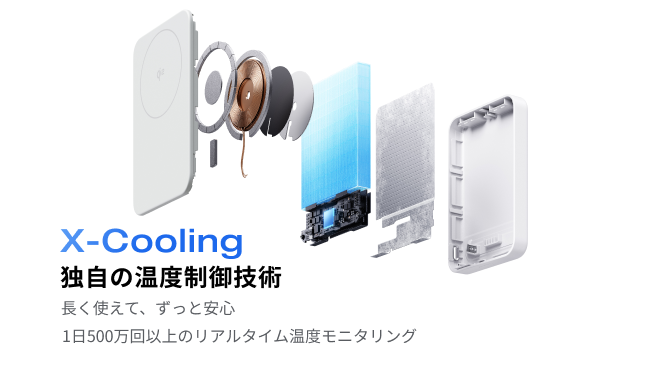 独自の冷却構造と500万回/日以上のリアルタイム温度モニタリングにより、バッテリー温度を42℃以下にキープ。発熱を抑えることで安全性も向上し、バッテリーの劣化も防ぎます。厳格な安全性試験に合格しているため、長く安心して使えます。