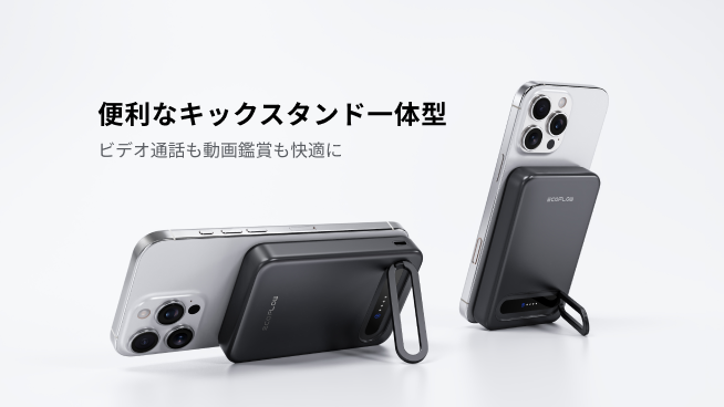 横置きも縦置きもできるコンパクトなキックスタンドを内蔵。動画の視聴やビデオ通話/会議まで、ハンズフリーで快適に使えます。