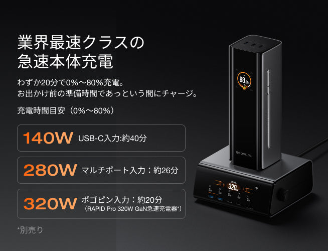 EcoFlow RAPID Pro Power Bank(27,650mAh, 300W, 140W USB-Cケーブル内蔵)