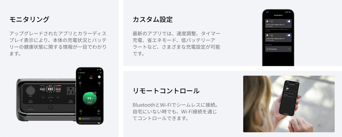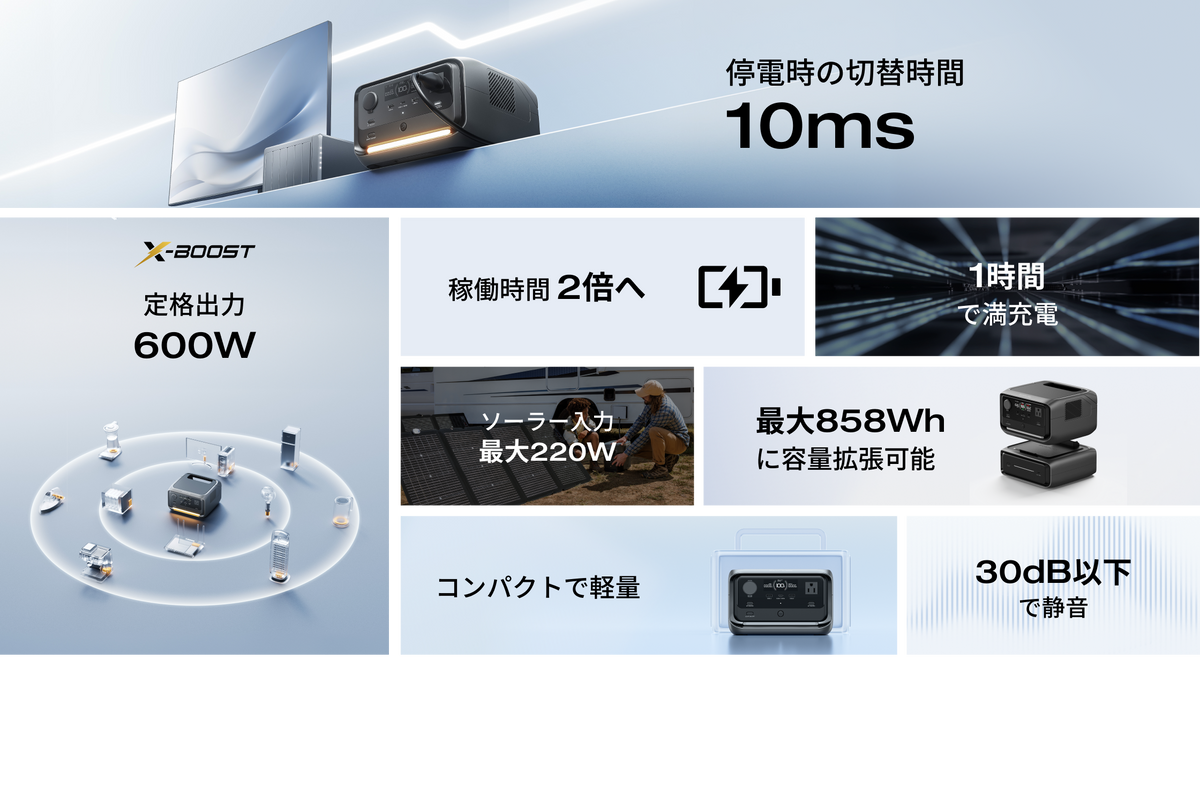 停電時に安心を提供、アウトドアではくつろぎ時間を延長