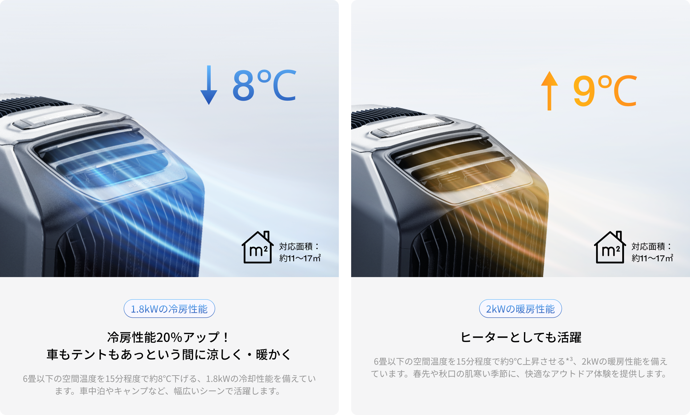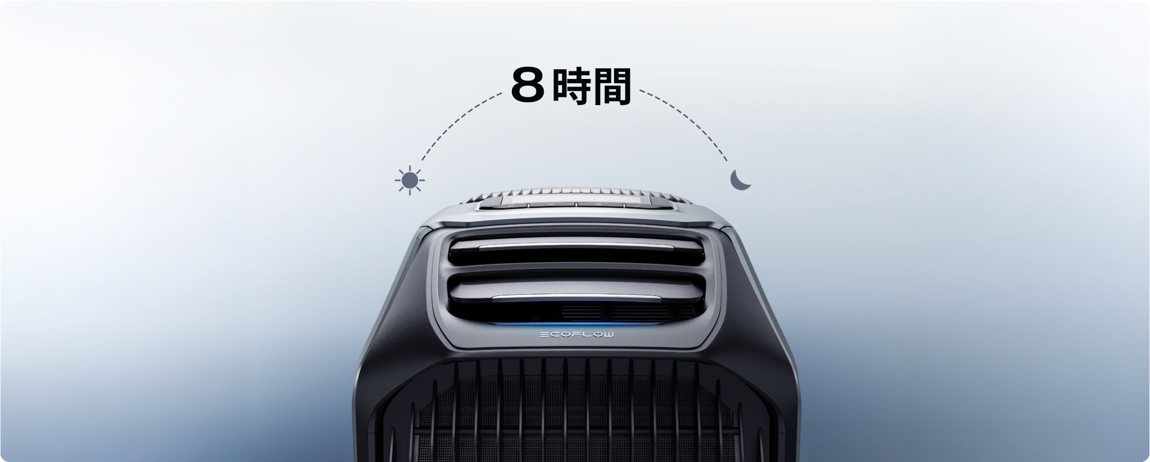 別売りの専用バッテリーパックにより、最長8時間ワイヤレスで連続稼働できるため、寝ている間も快適な空間をキープします。