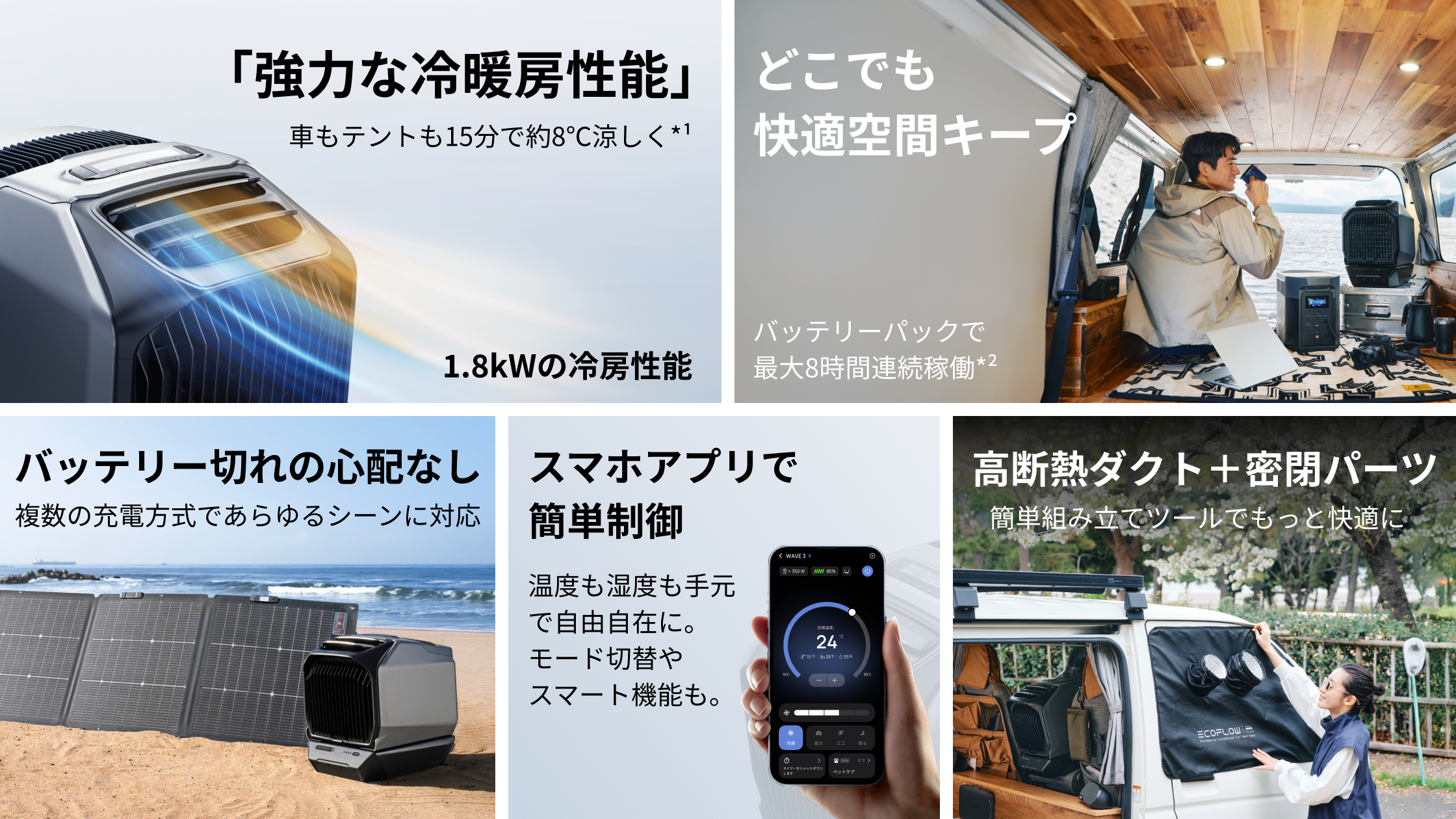 EcoFlow WAVE 3は自然冷媒(R290)を採用した環境にやさしいポータブルエアコンです。